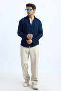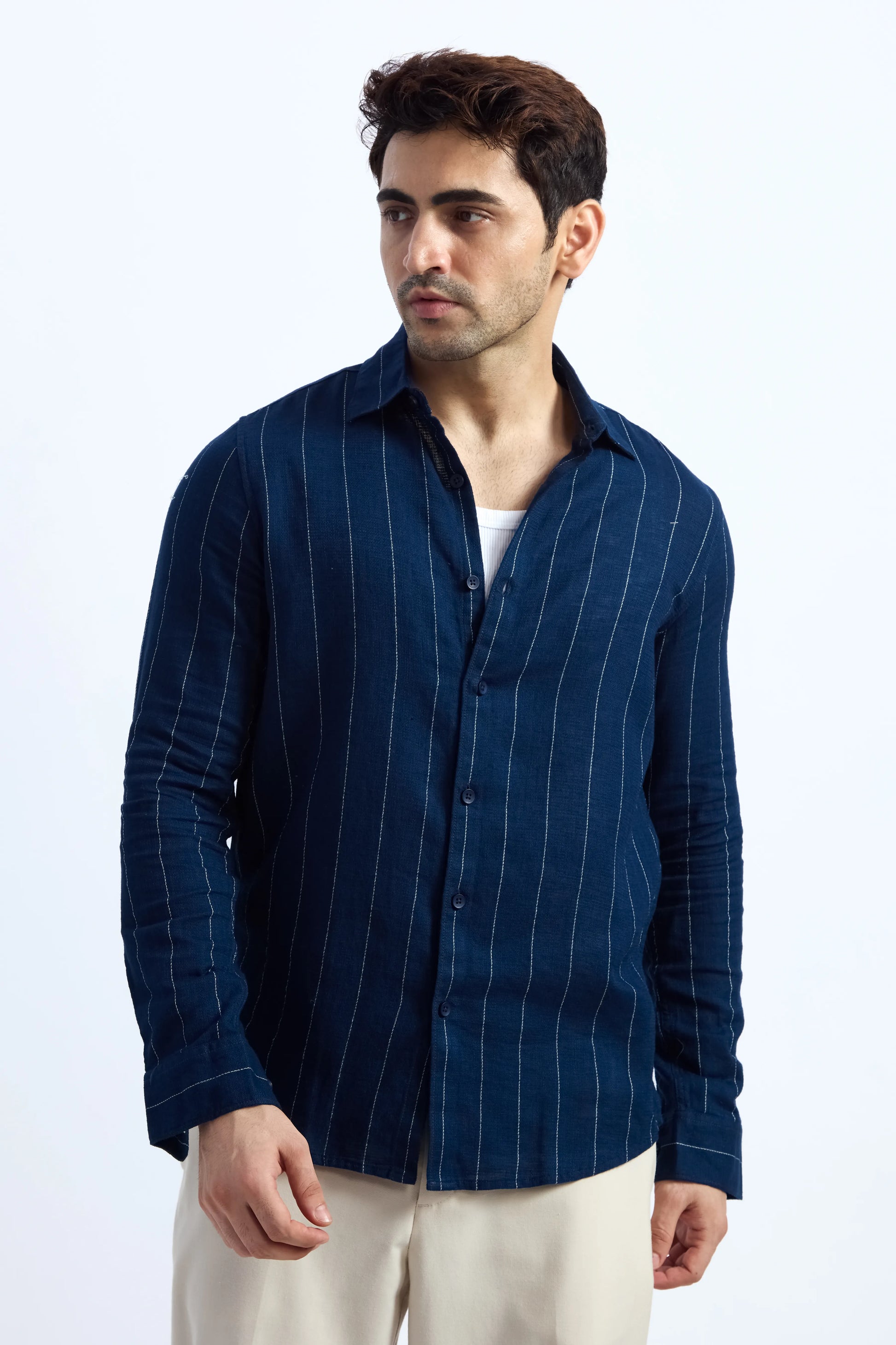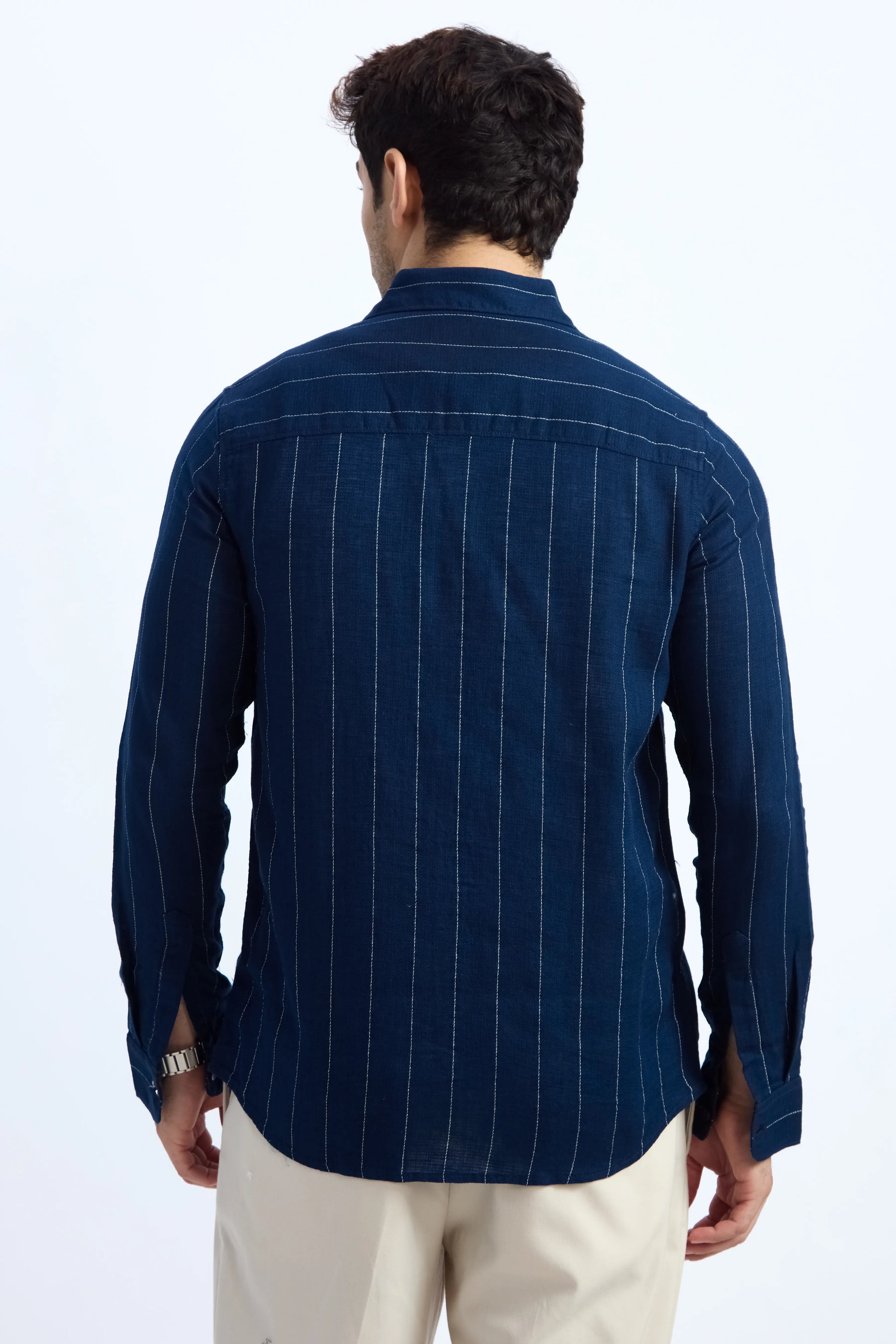 NAVY BLUE PINSTRIPE COTTON TEXTURED SHIRT