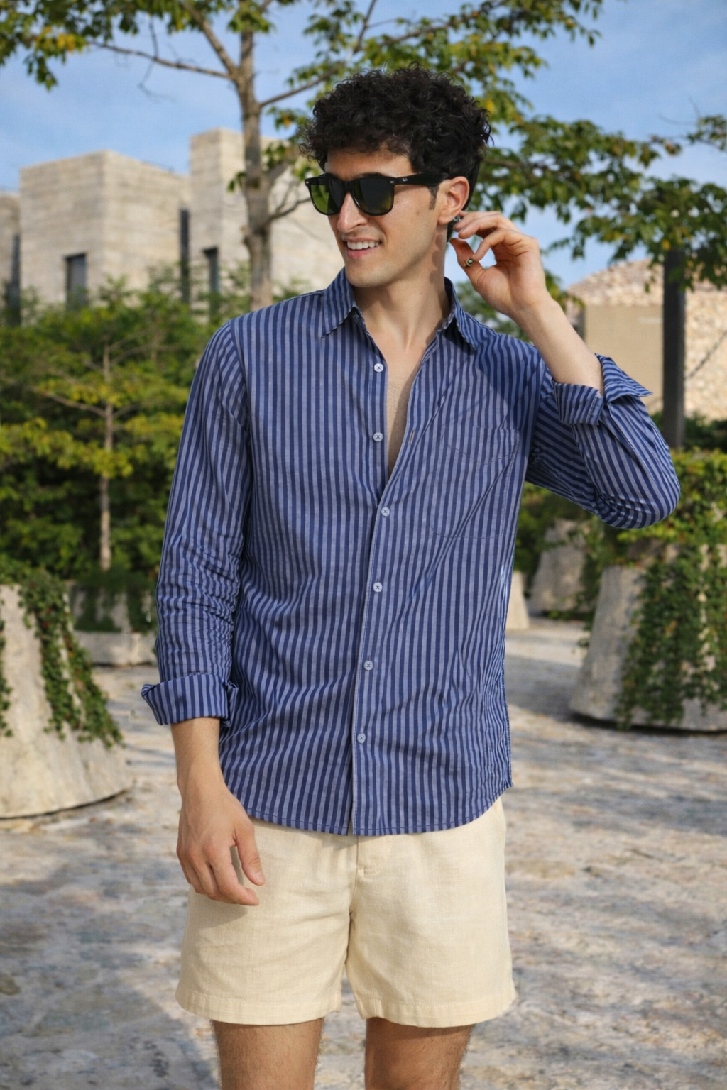 NAVY STRIPE REGULAR FIT SHIRT
