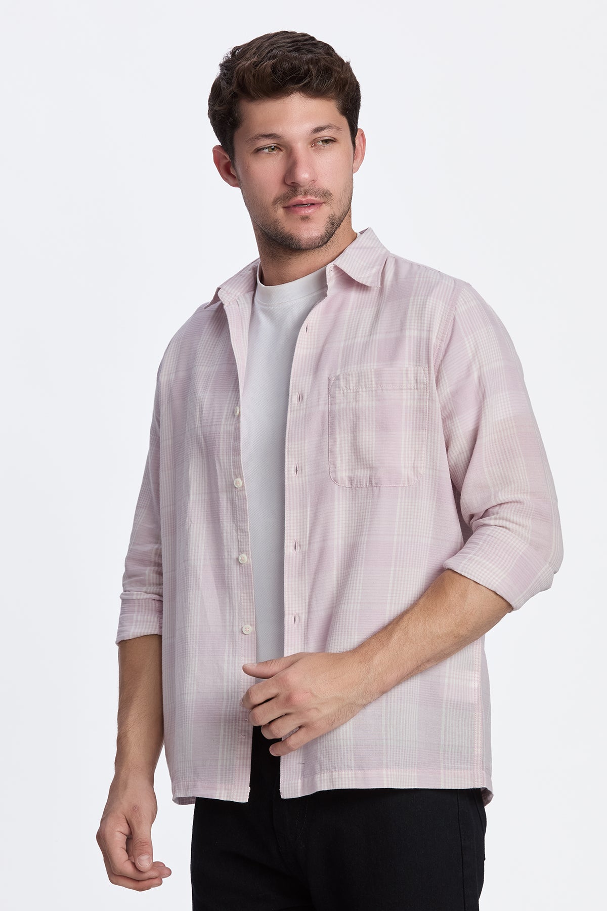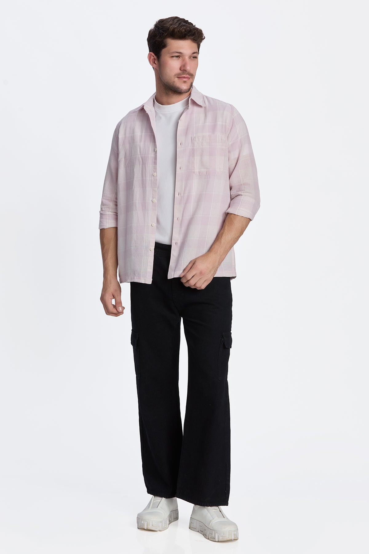 LIGHT PINK CROPPED FIT CHECK SHIRT