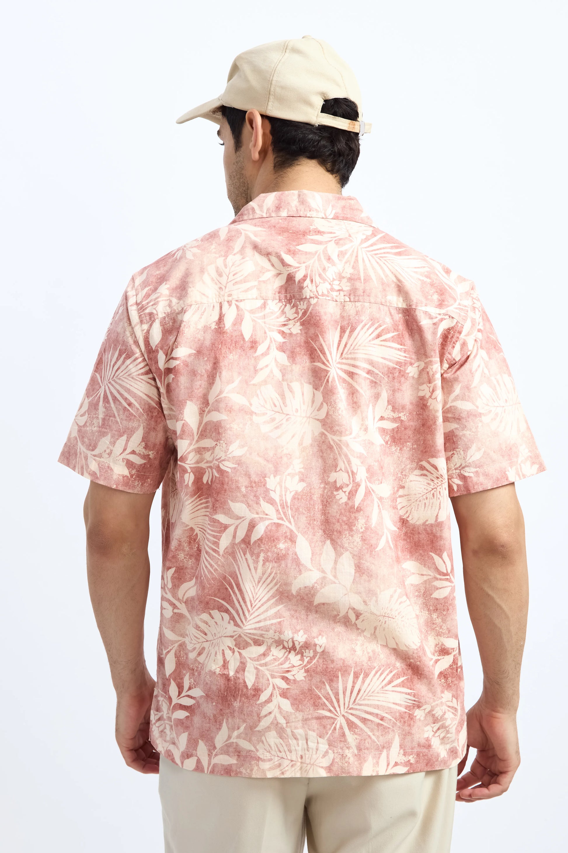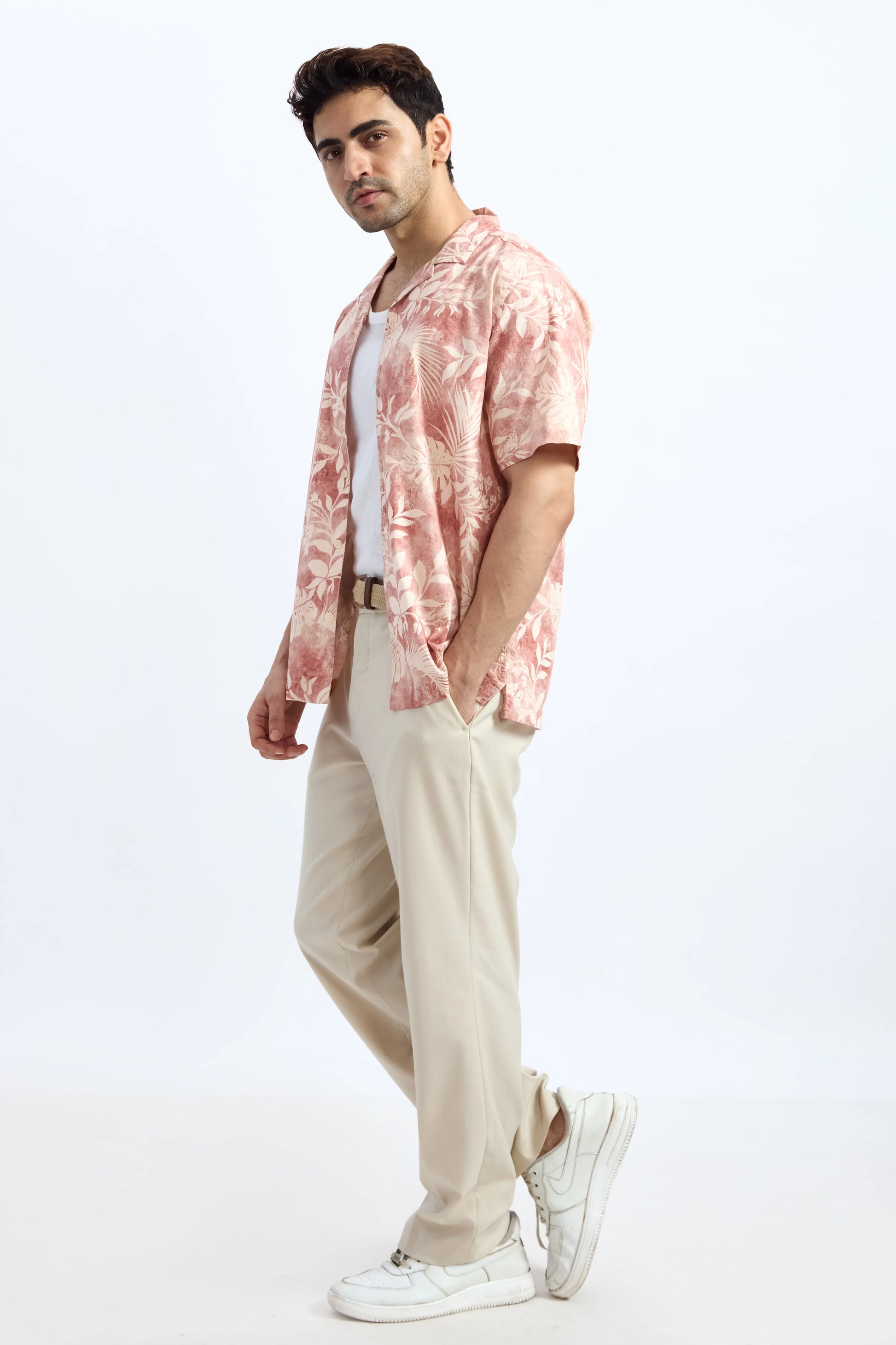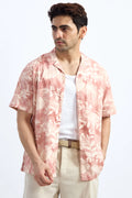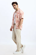 LIGHT RED PRINTED RELAXED FIT COTTON SHIRT
