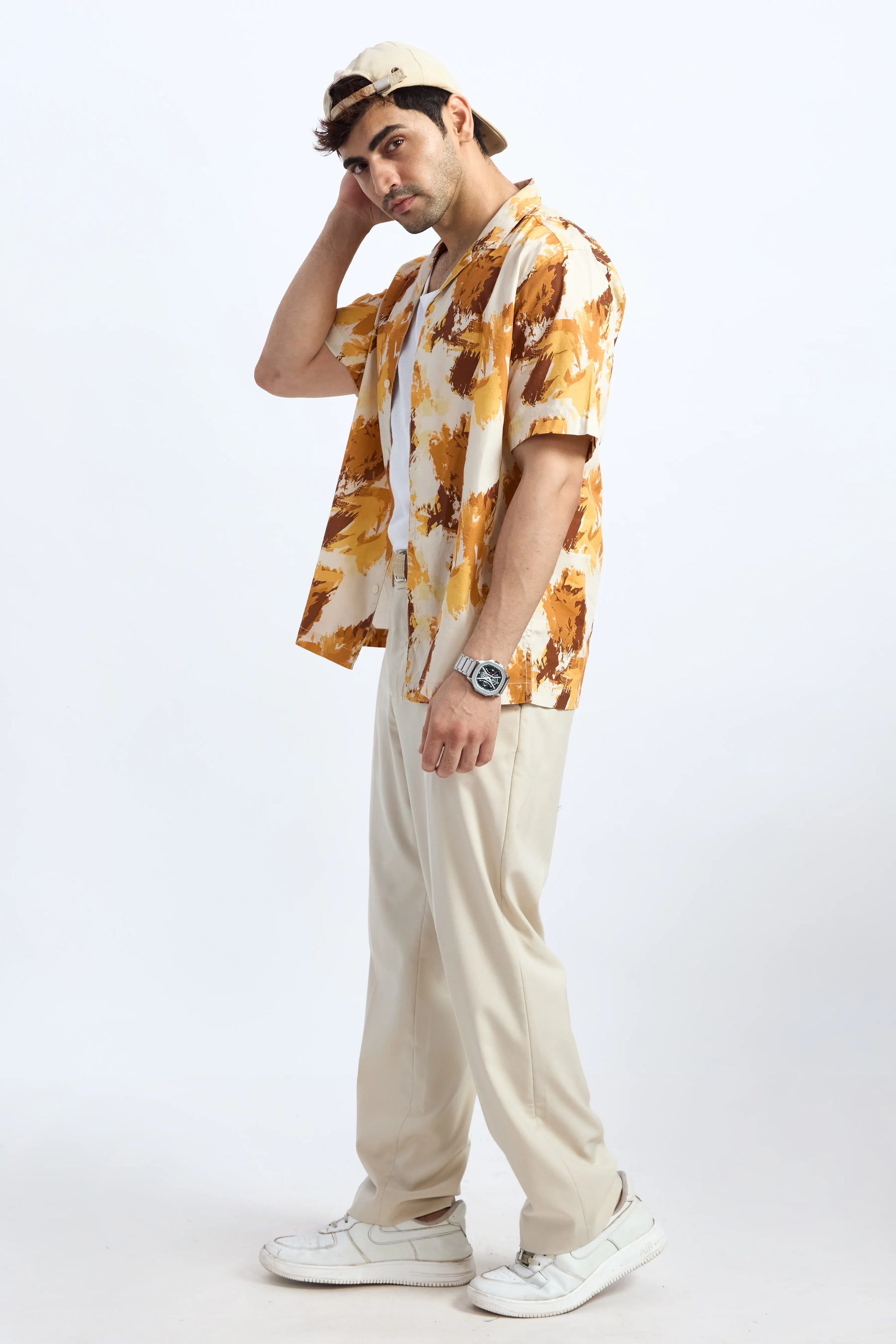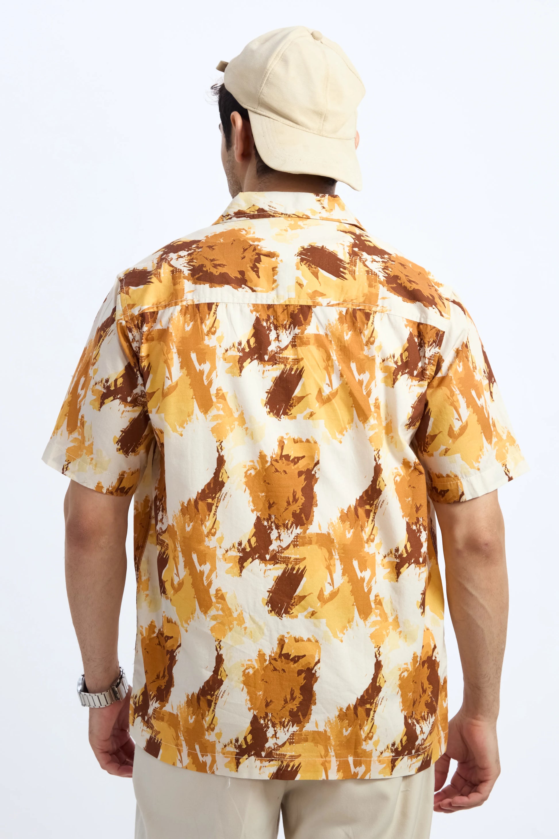 YELLOW PRINTED RELAXED FIT COTTON SHIRT