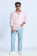 SOFT PINK LINEN BLEND MANDARIN COLLAR SHIRT