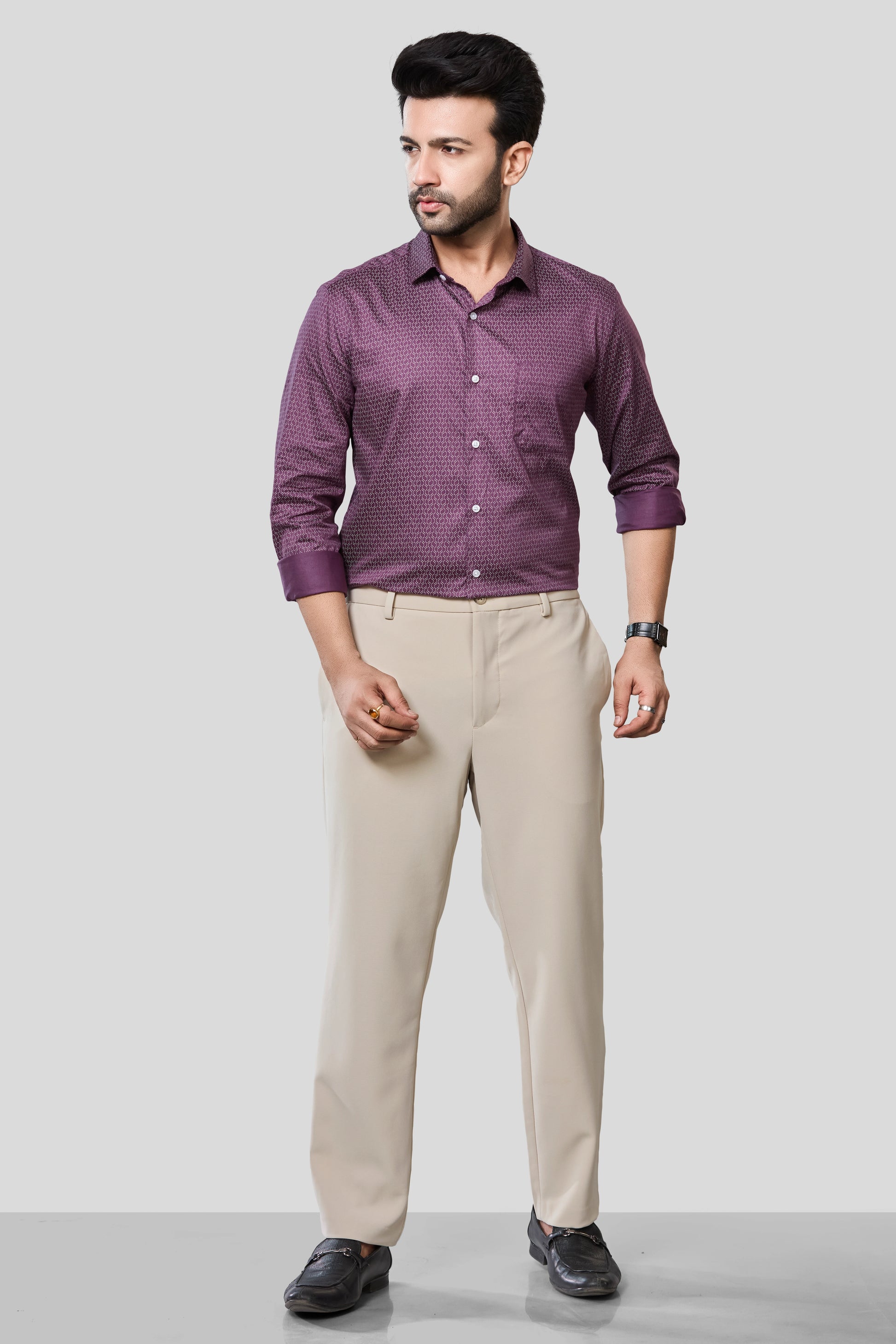 Upgrade your wardrobe with our Satin Printed Formal Shirt, where classic tailoring meets contemporary design. Crafted from 100% pure cotton, this shirt offers the perfect blend of breathability, comfort, and a luxurious satin finish.