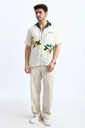 SUMMER LEAVES LINEN BLEND PRINTED CUBAN SHIRT