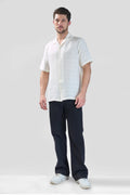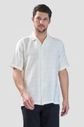 XKIND WHITE HORIZONTAL PLEATED STRIPES RELAXED FIT SHIRT