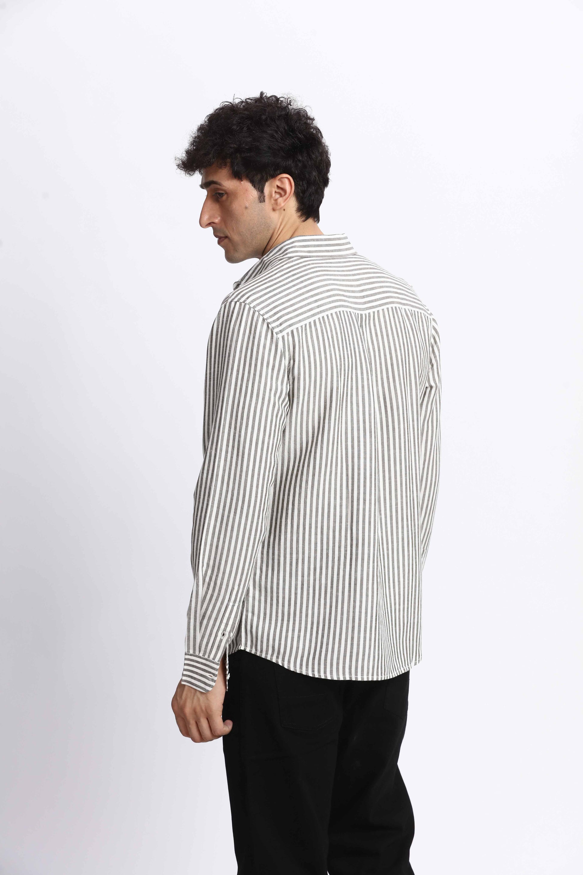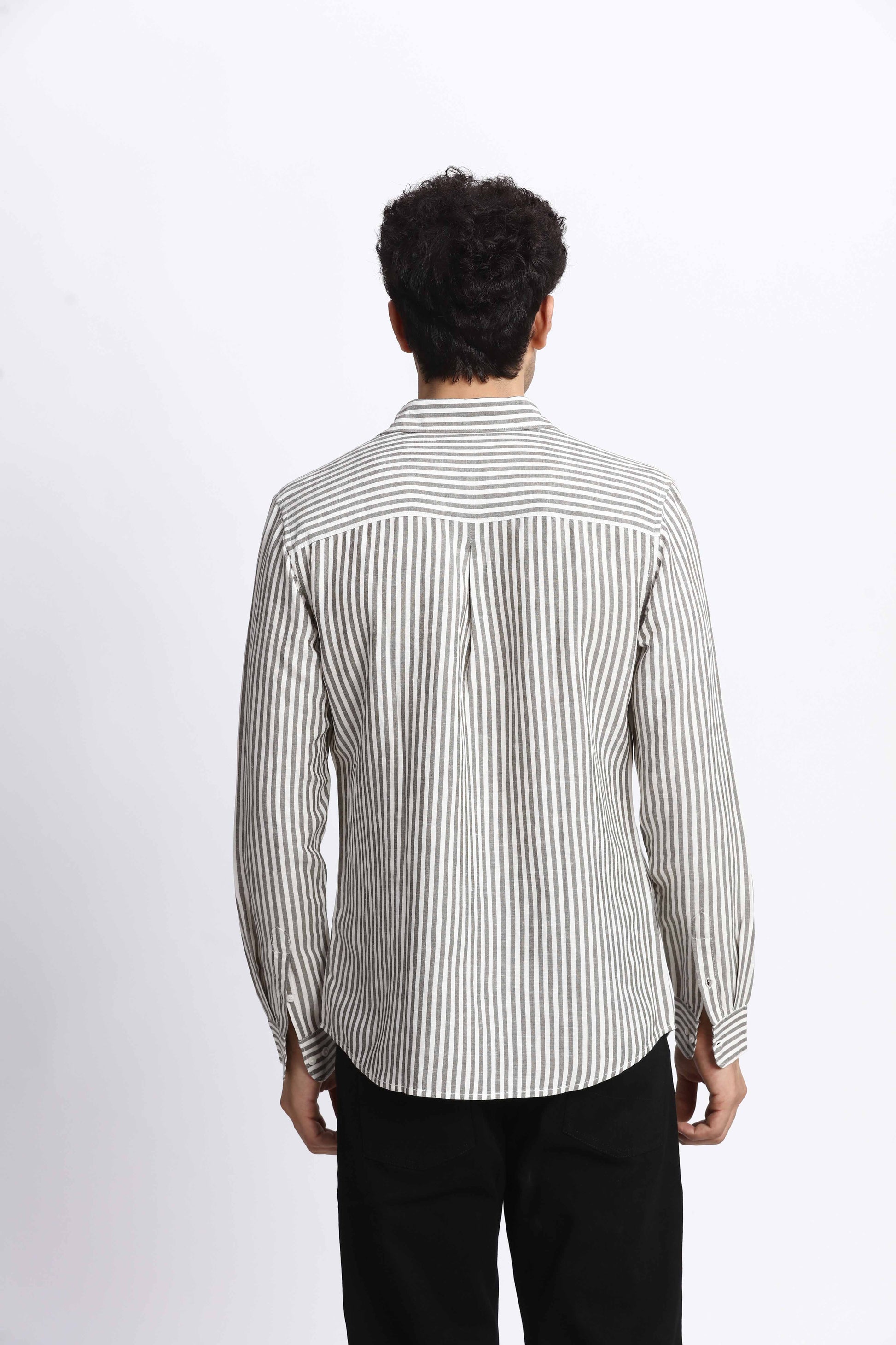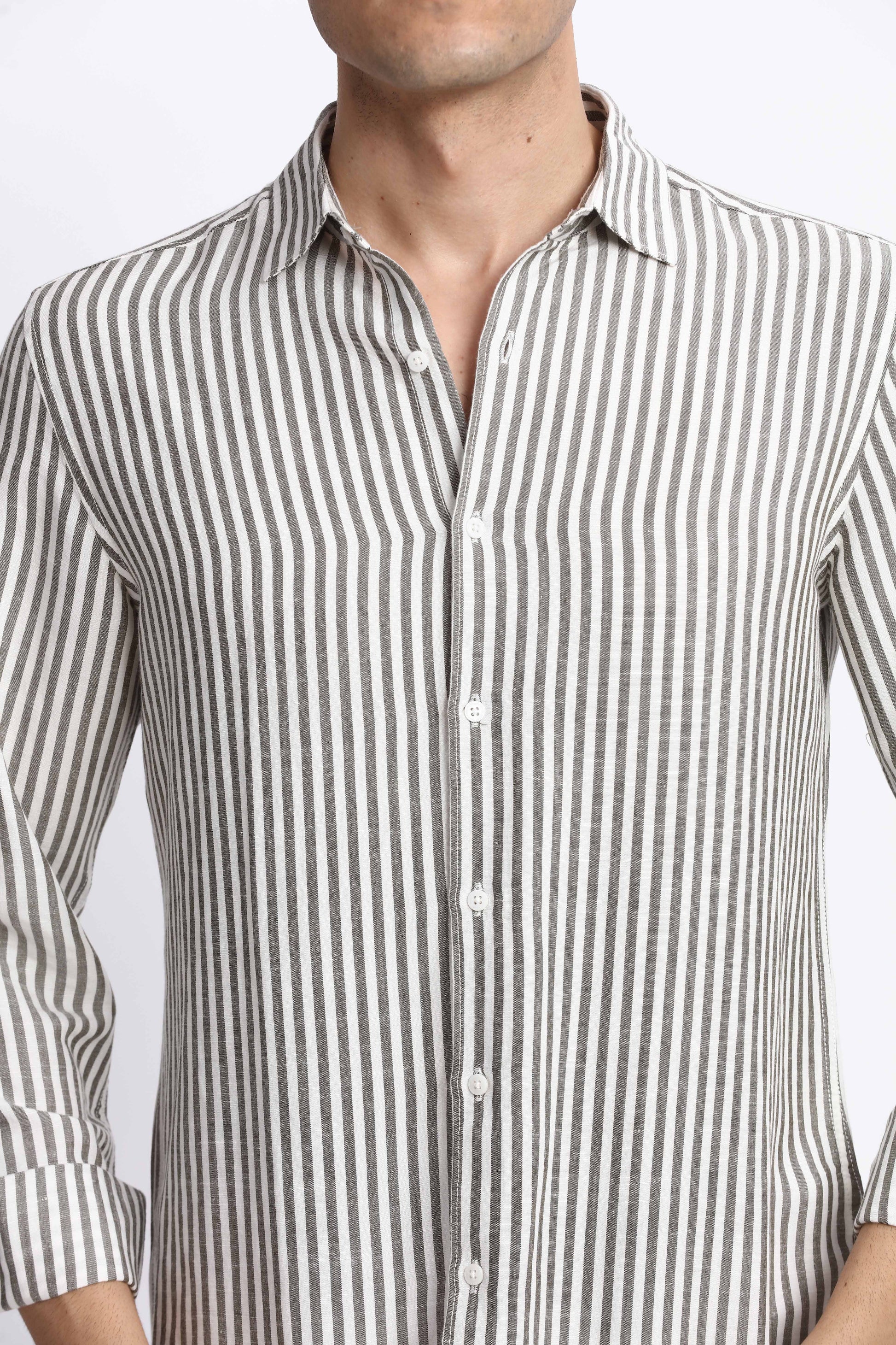 LINEN BLEND WHITE STRIPE REGULAR FIT SHIRT