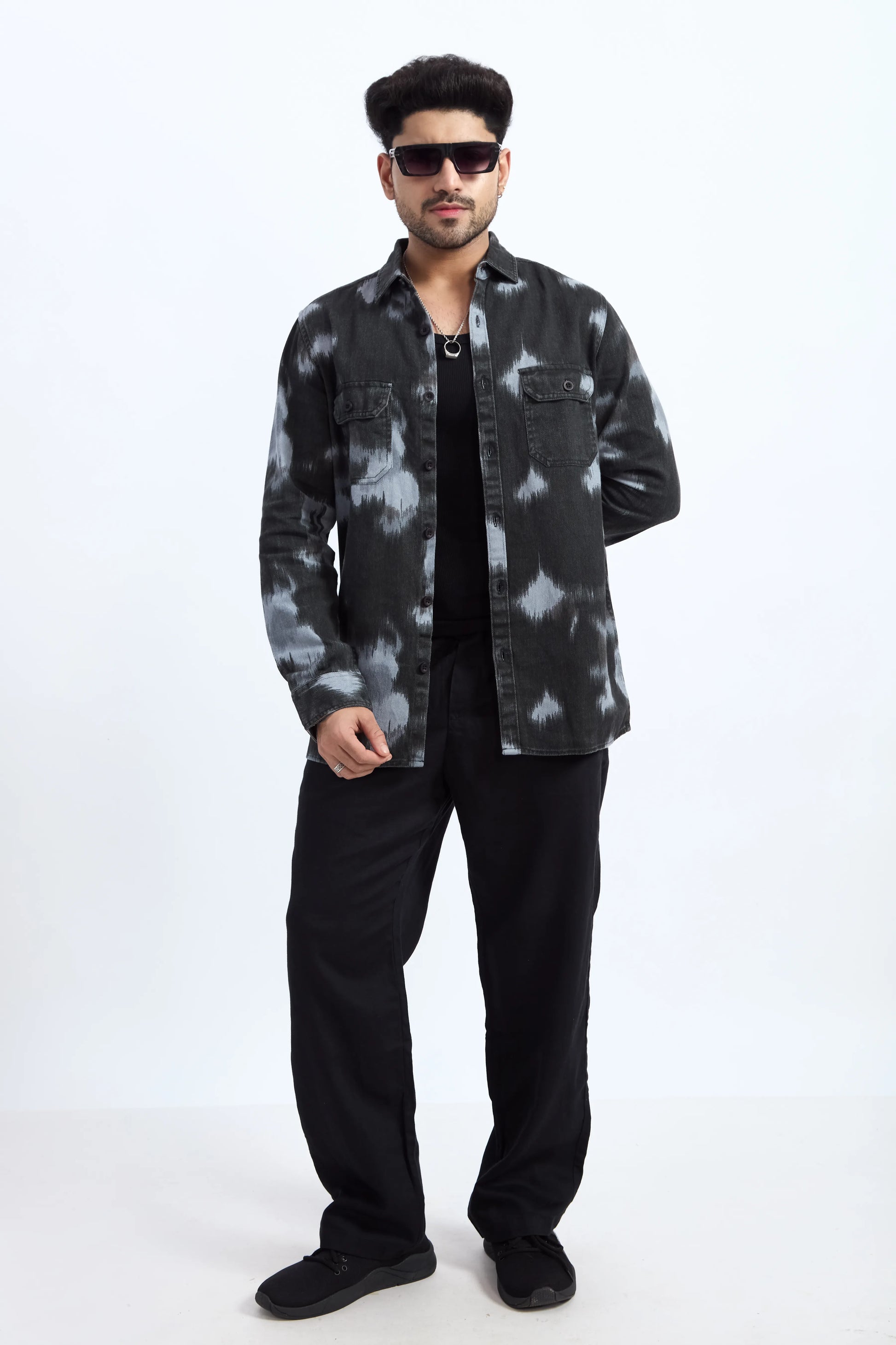 Brand: XKind Fabric: 100% cotton Denim Pattern: Printed Sleeves: Full Sleeves Colour: Light Blue Collar: Regular Fit: Regular Pocket: Double pocket Flap
