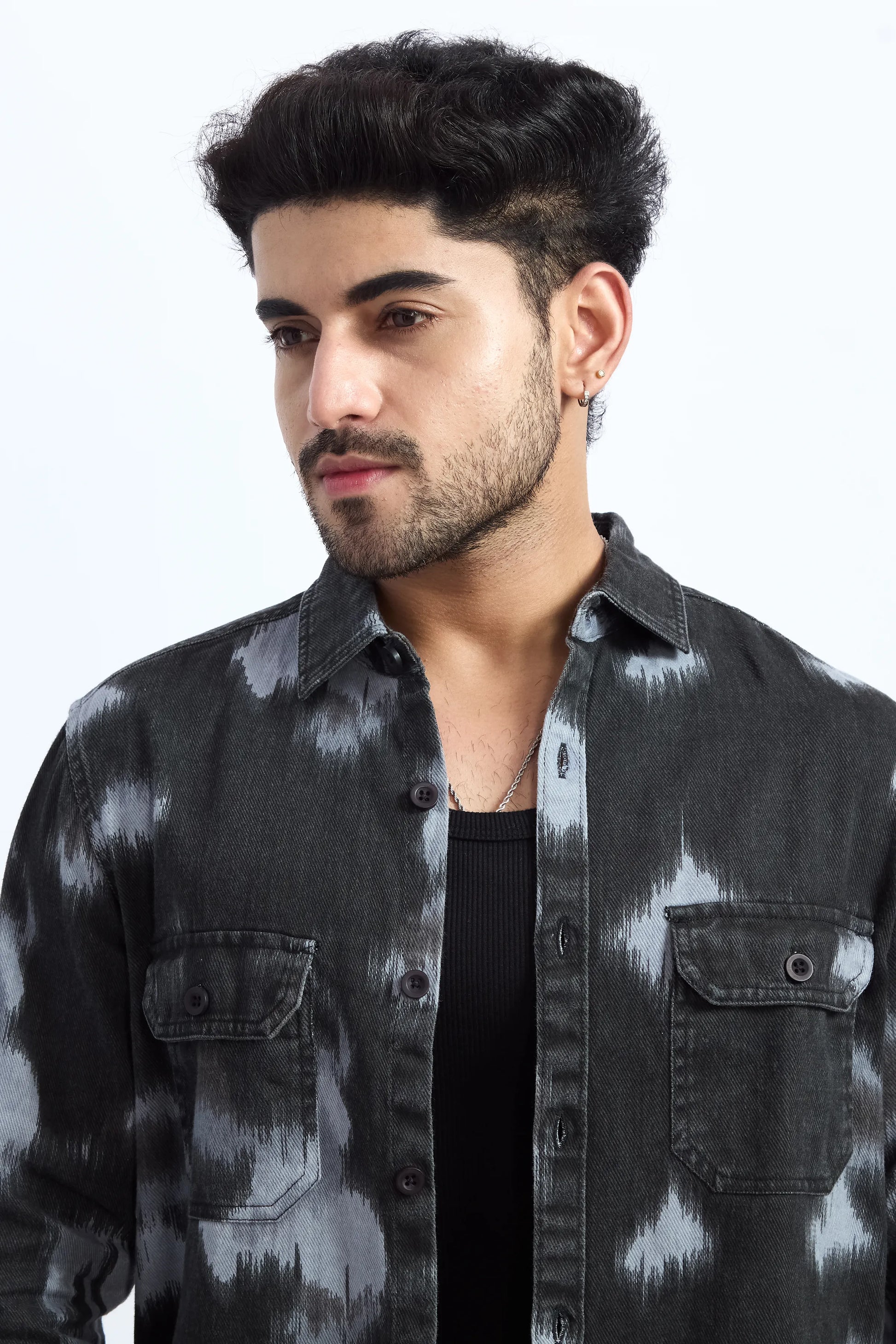 XKIND LIGHT BLUE PRINTED DENIM SHACKET