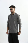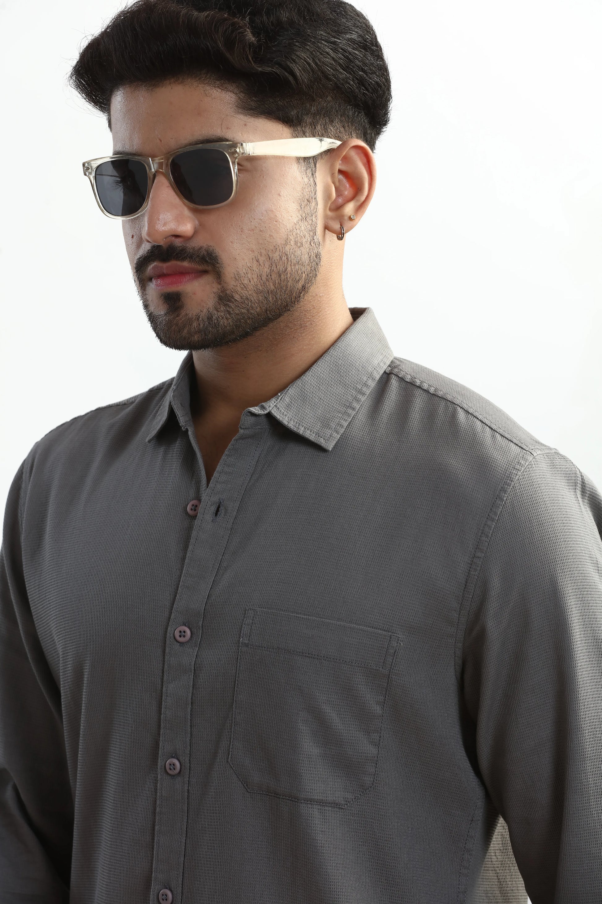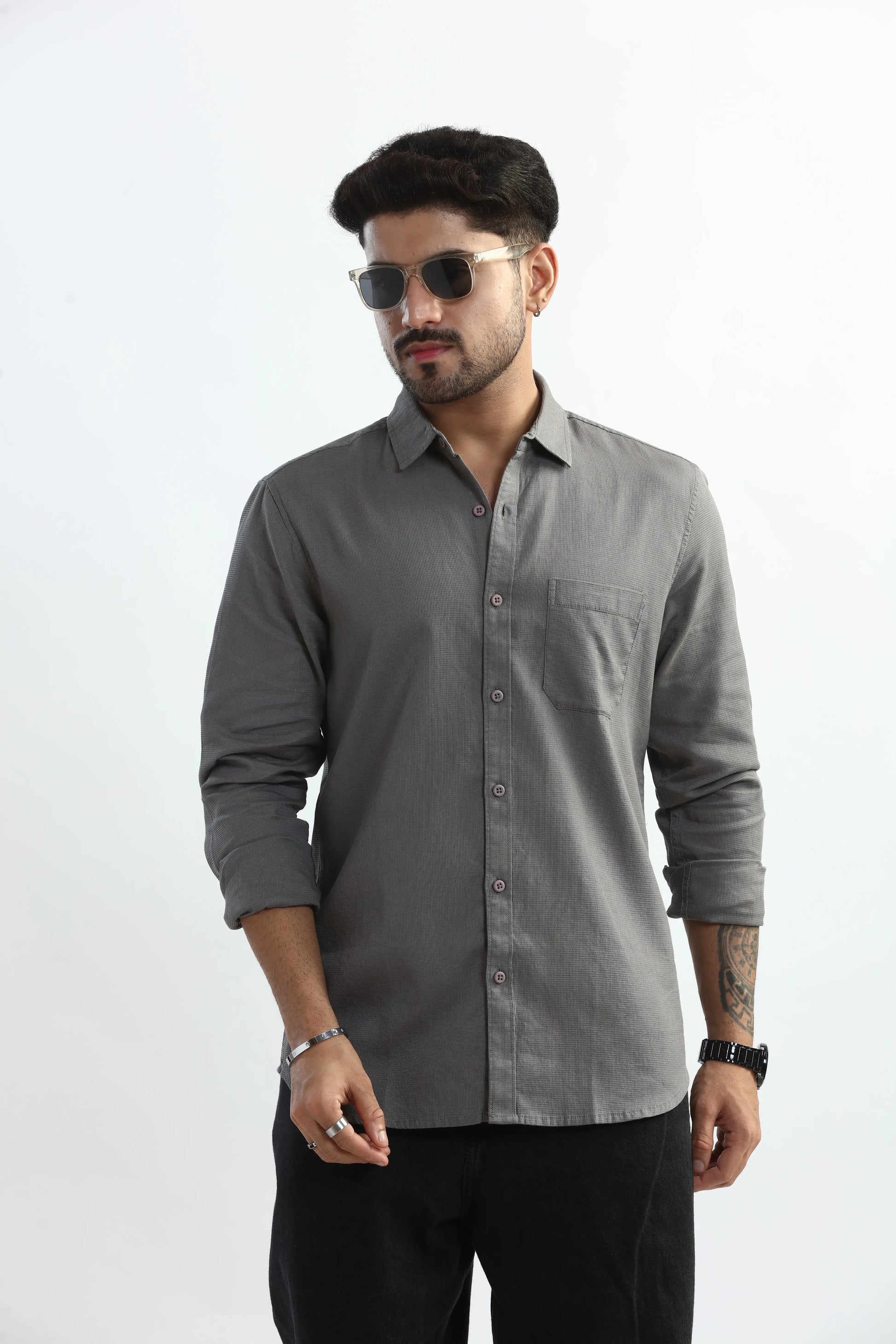 XKIND LIGHT GREY TEXTURED SLIM FIT SHIRT