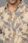 Upgrade your wardrobe with this stylish linen printed shirt. Crafted from breathable linen fabric, this shirt offers comfort and sophistication. The beige tone provides a versatile canvas for the unique print, adding a touch of personality to your outfit.