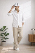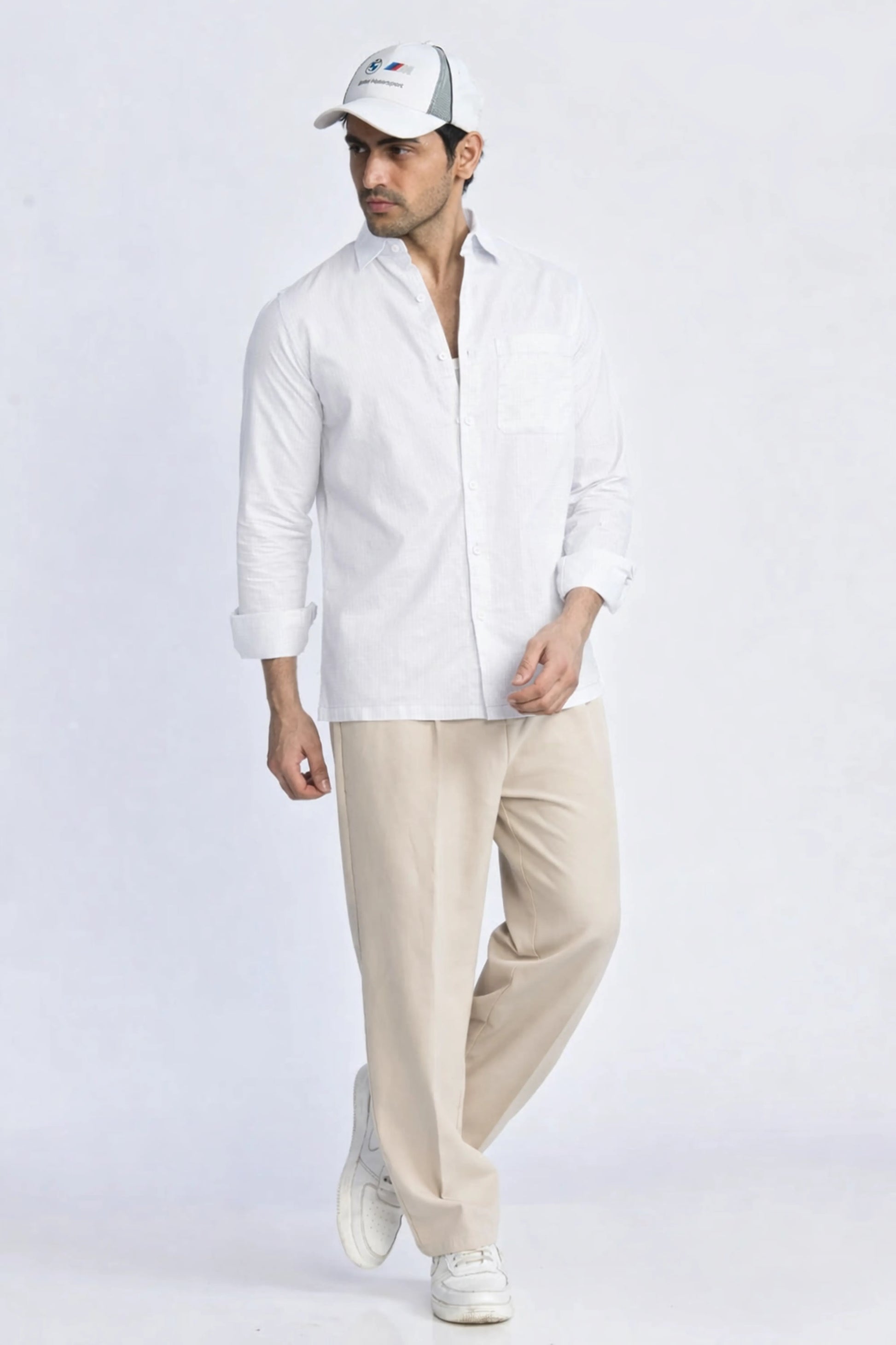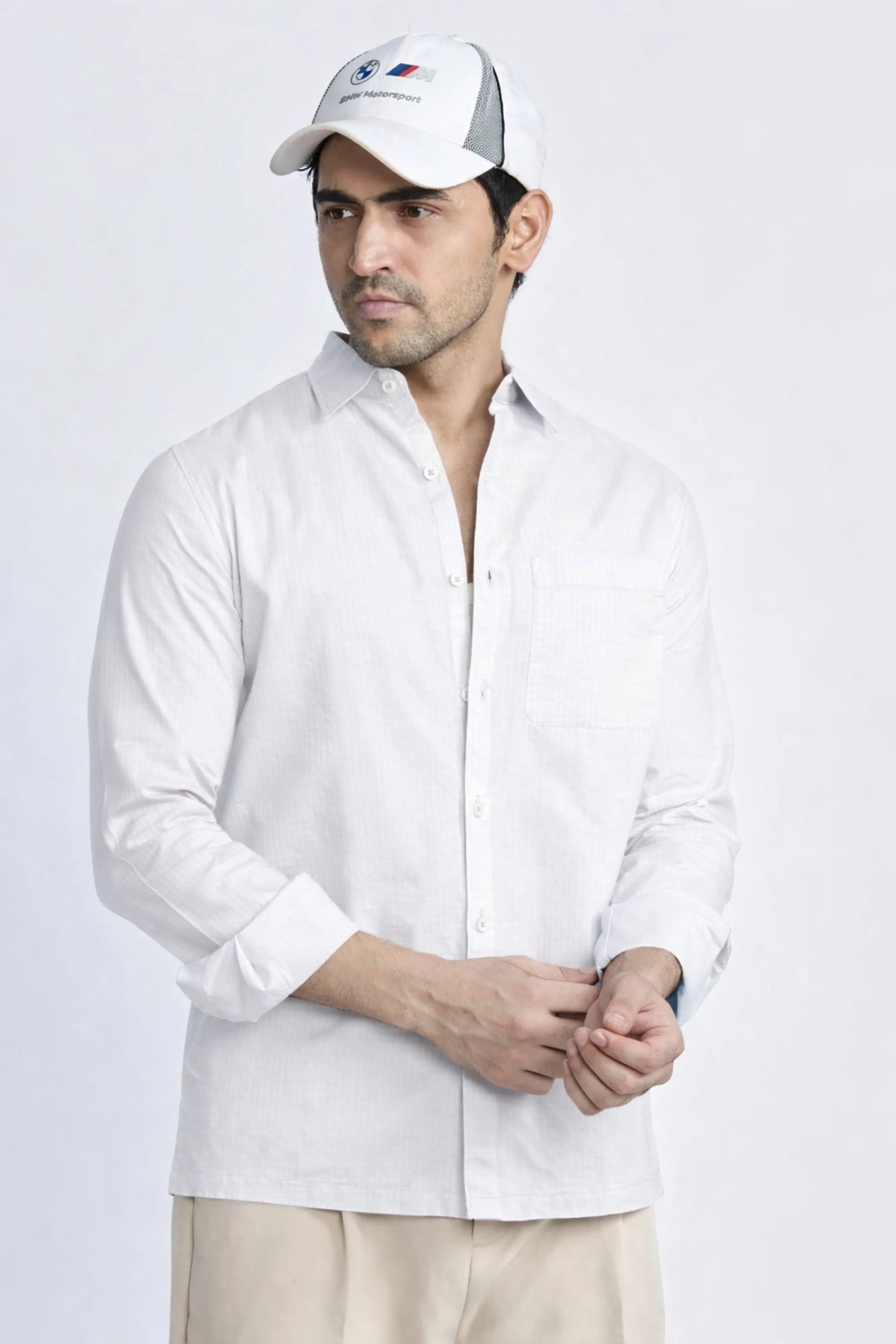WHITE XKIND CROPPED FIT COTTON TEXTURED CHECK SHIRT