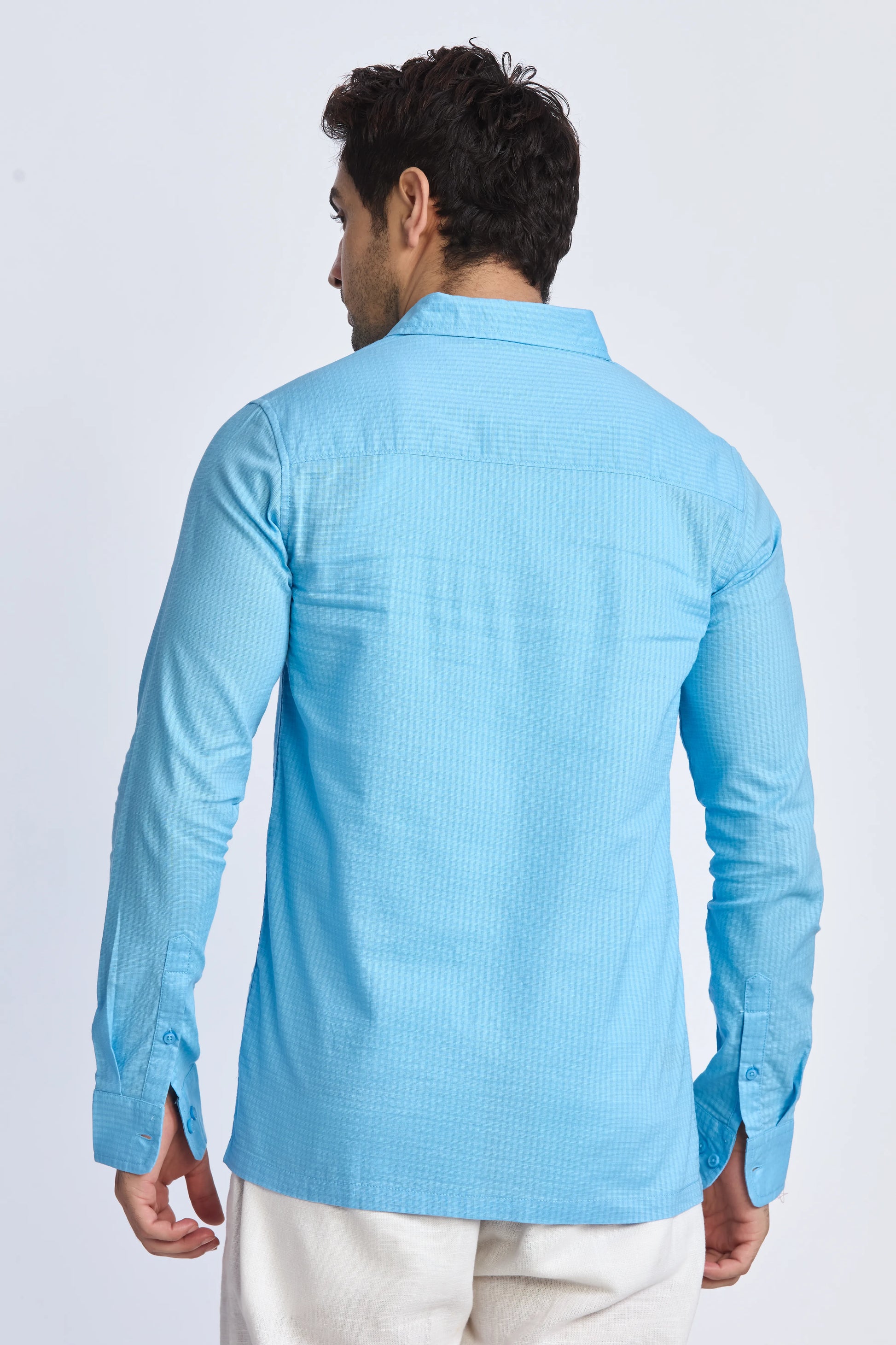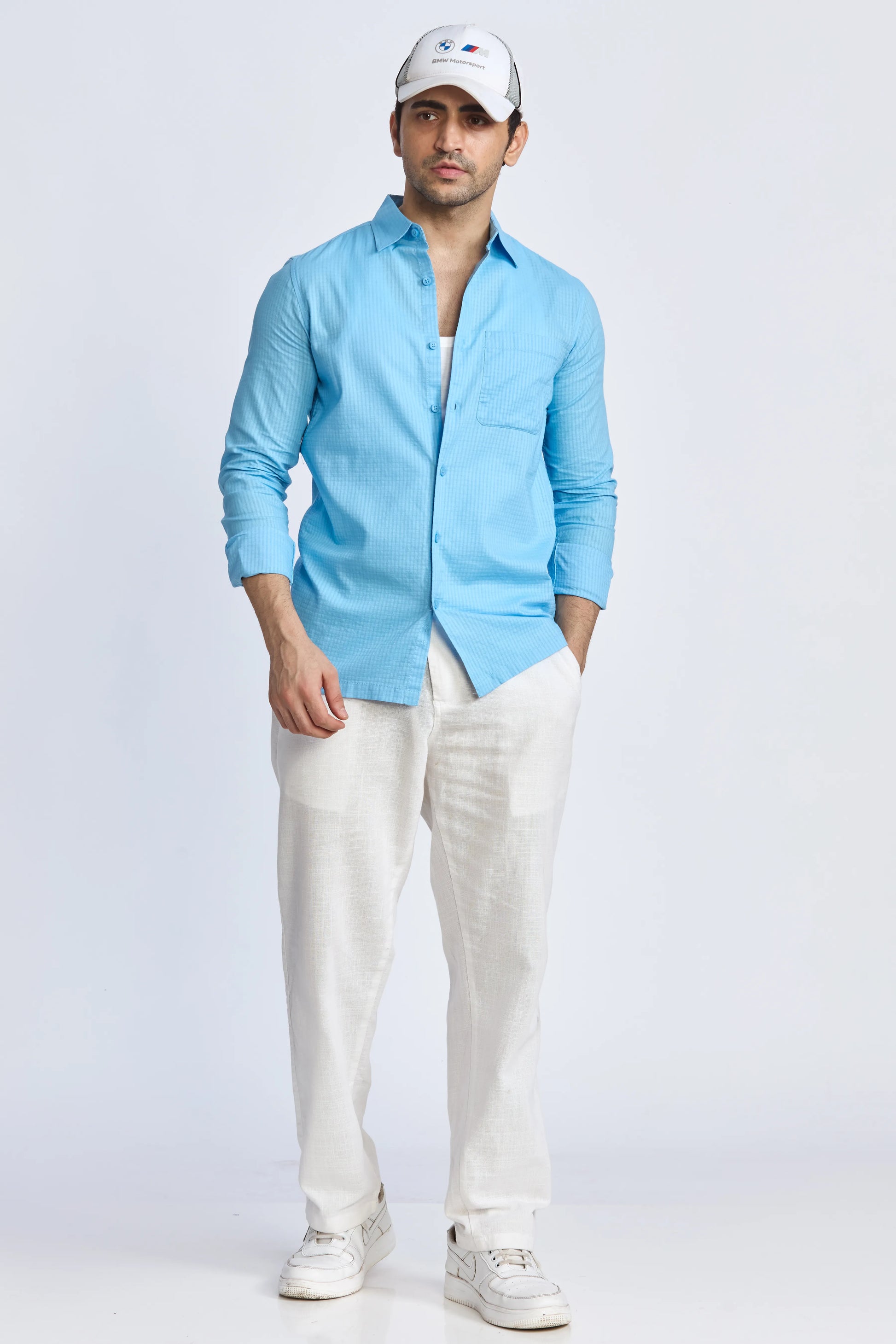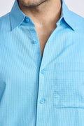 SKY BLUE XKIND CROPPED FIT COTTON CHECK SHIRT