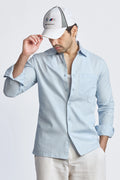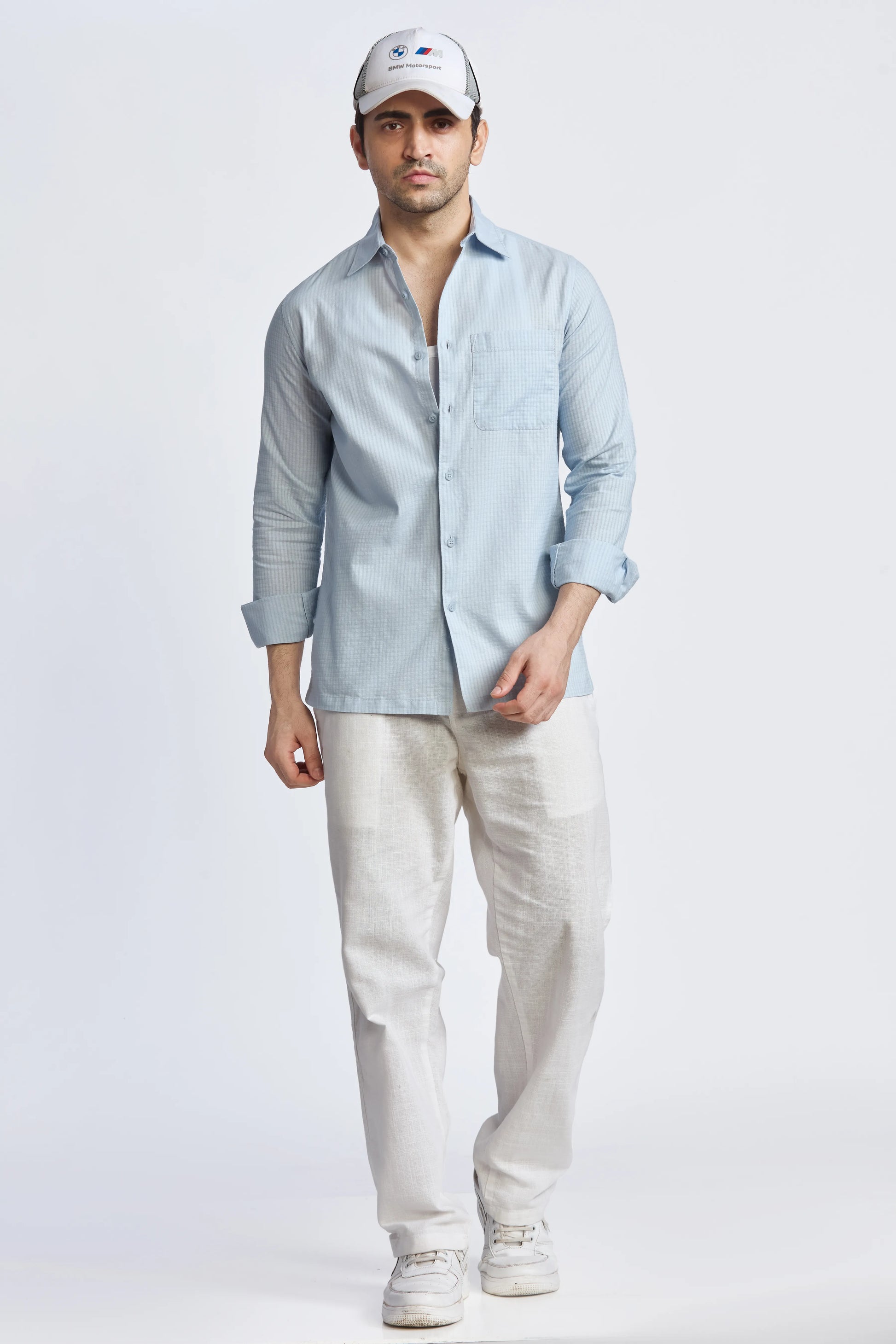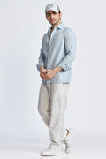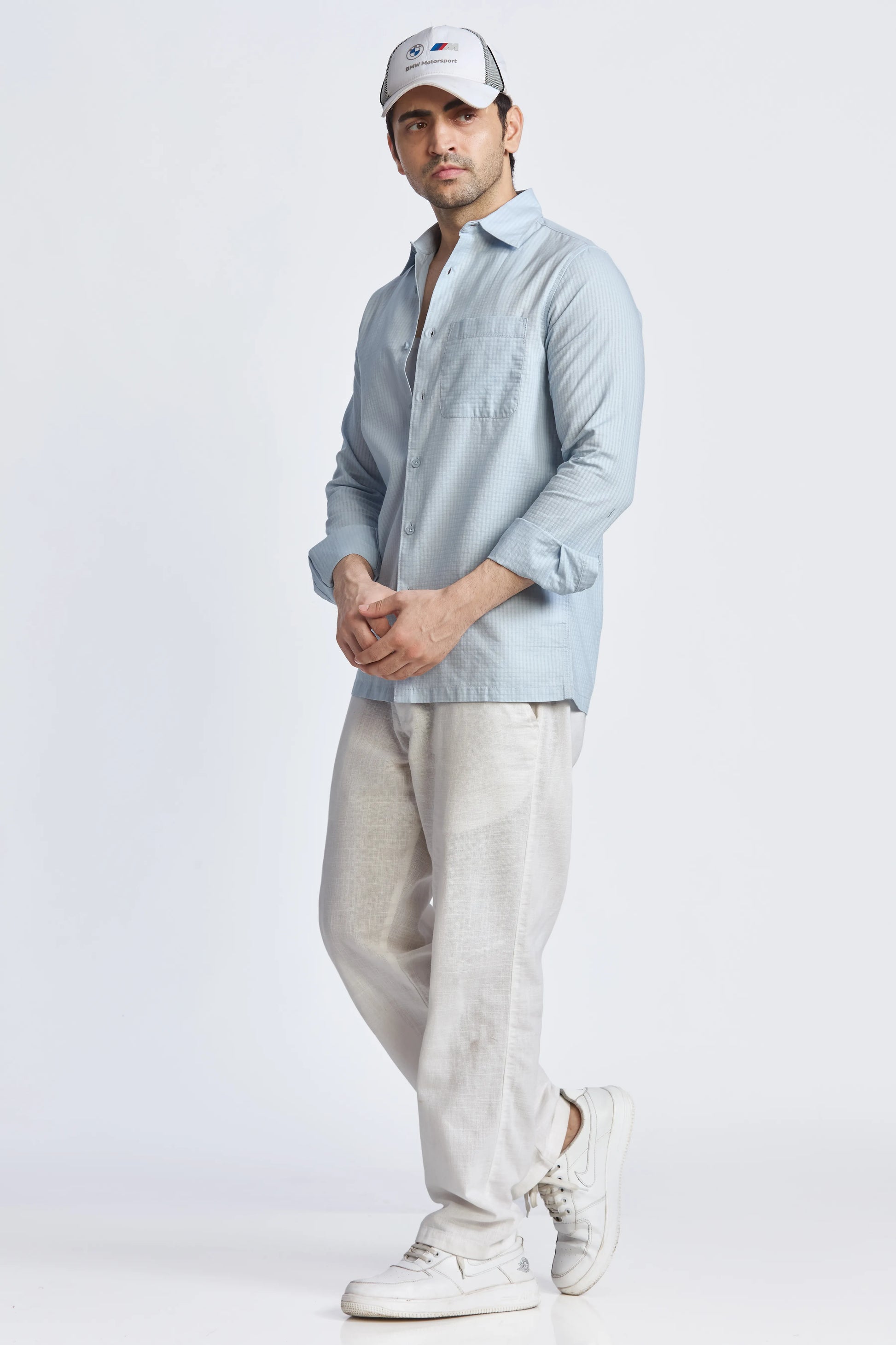 LIGHT BLUE XKIND CROPPED FIT COTTON CHECK SHIRT
