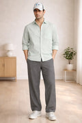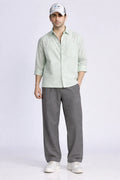 LIGHT GREEEN CROPPED FIT COTTON CHECK SHIRT