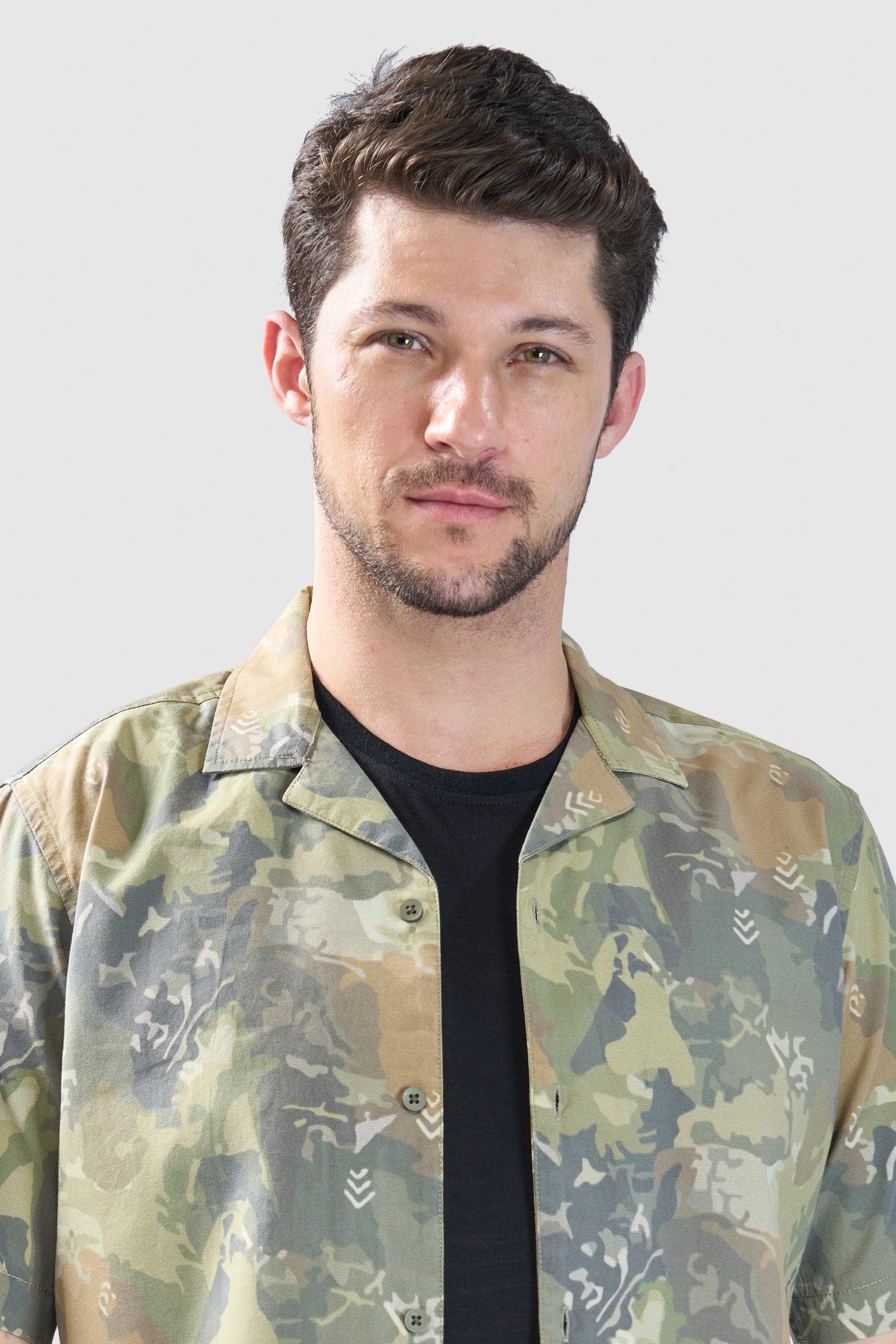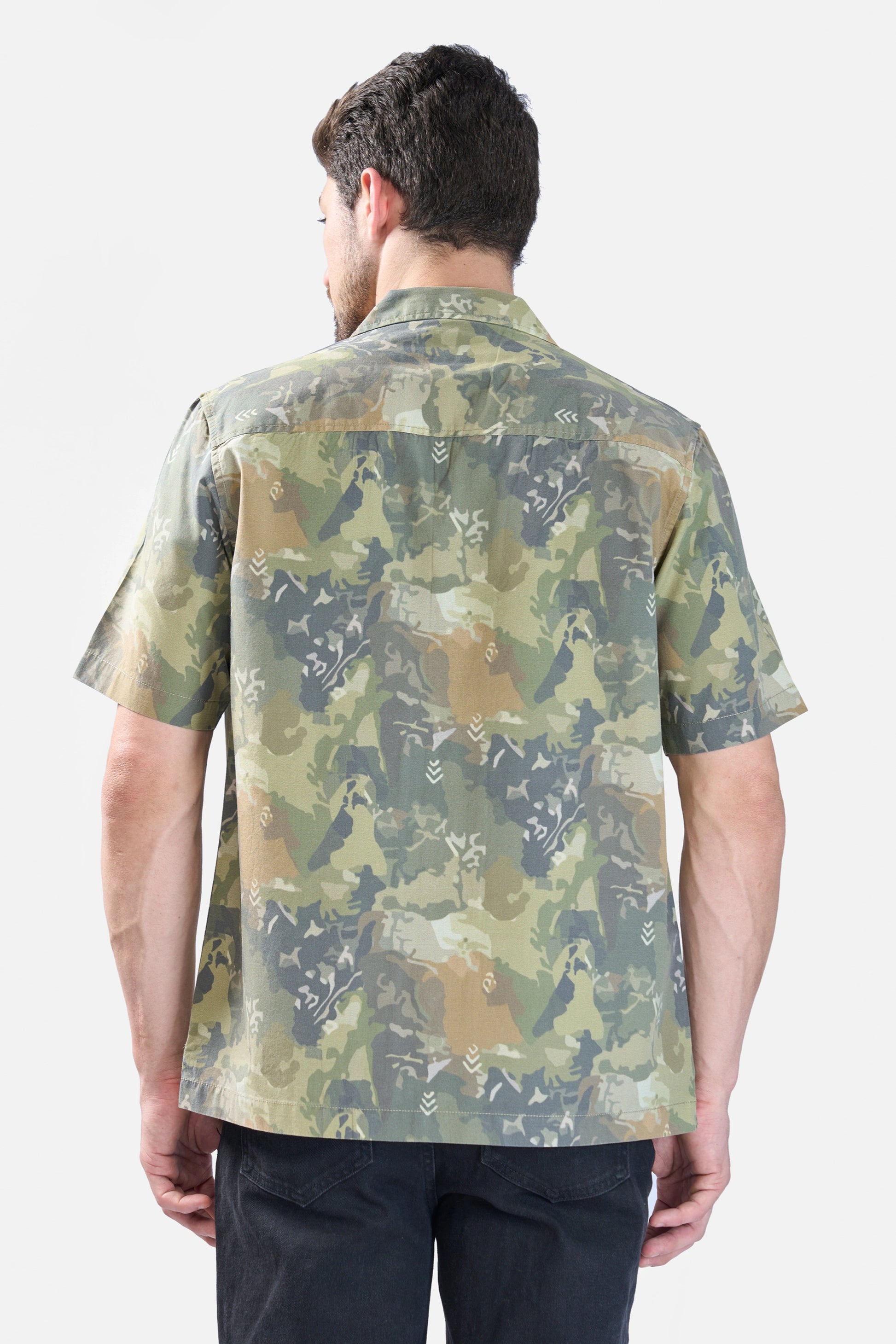 XKIND OLIVE ABSTRACT PRINTED RELAXED FIT SHIRT