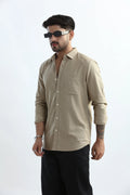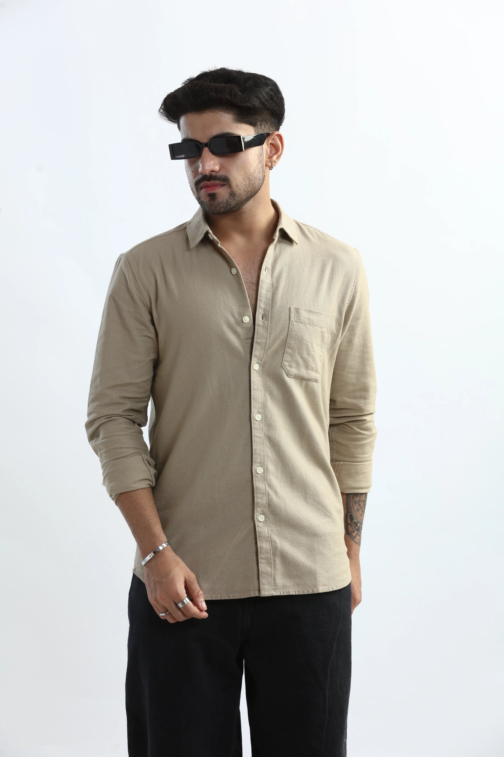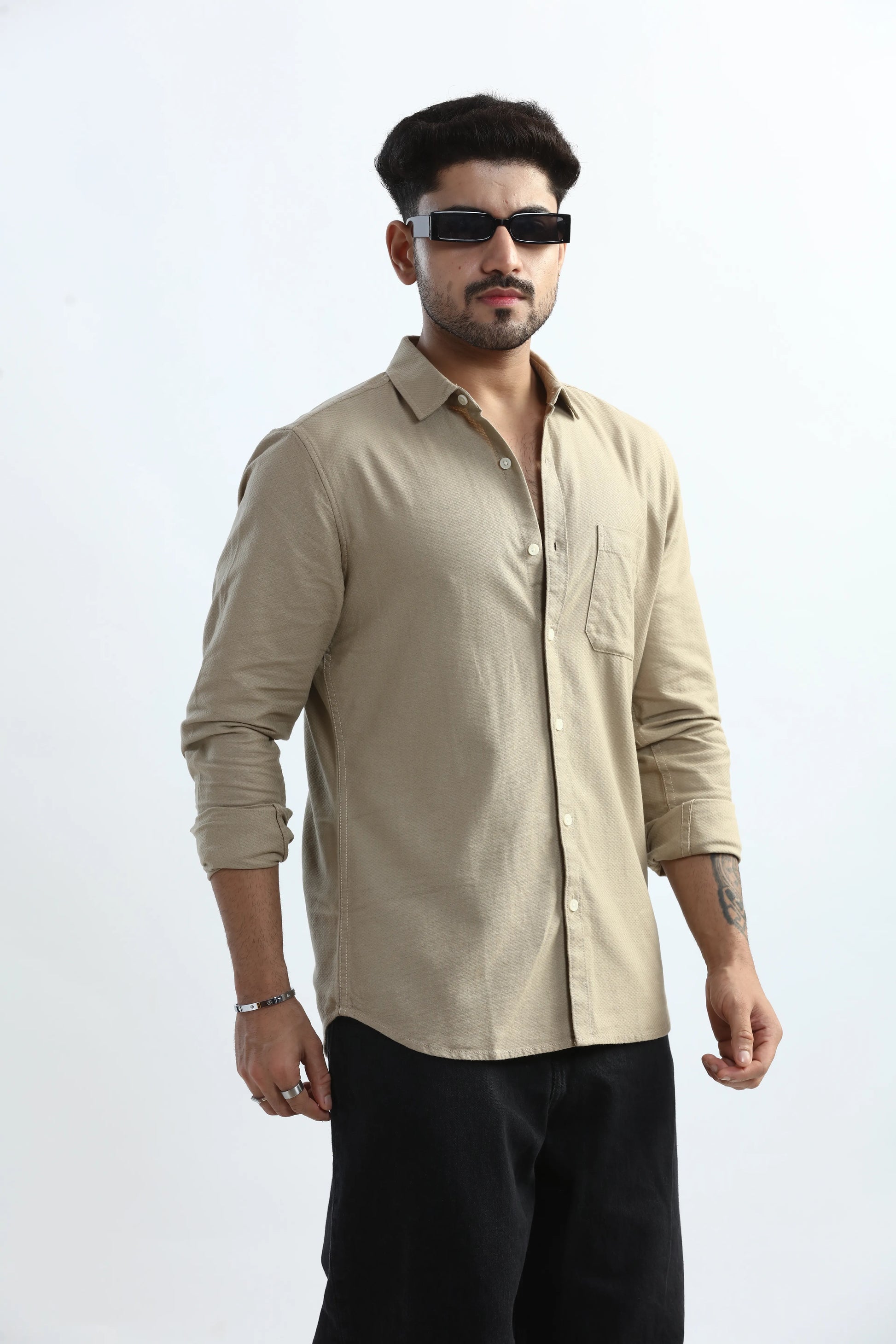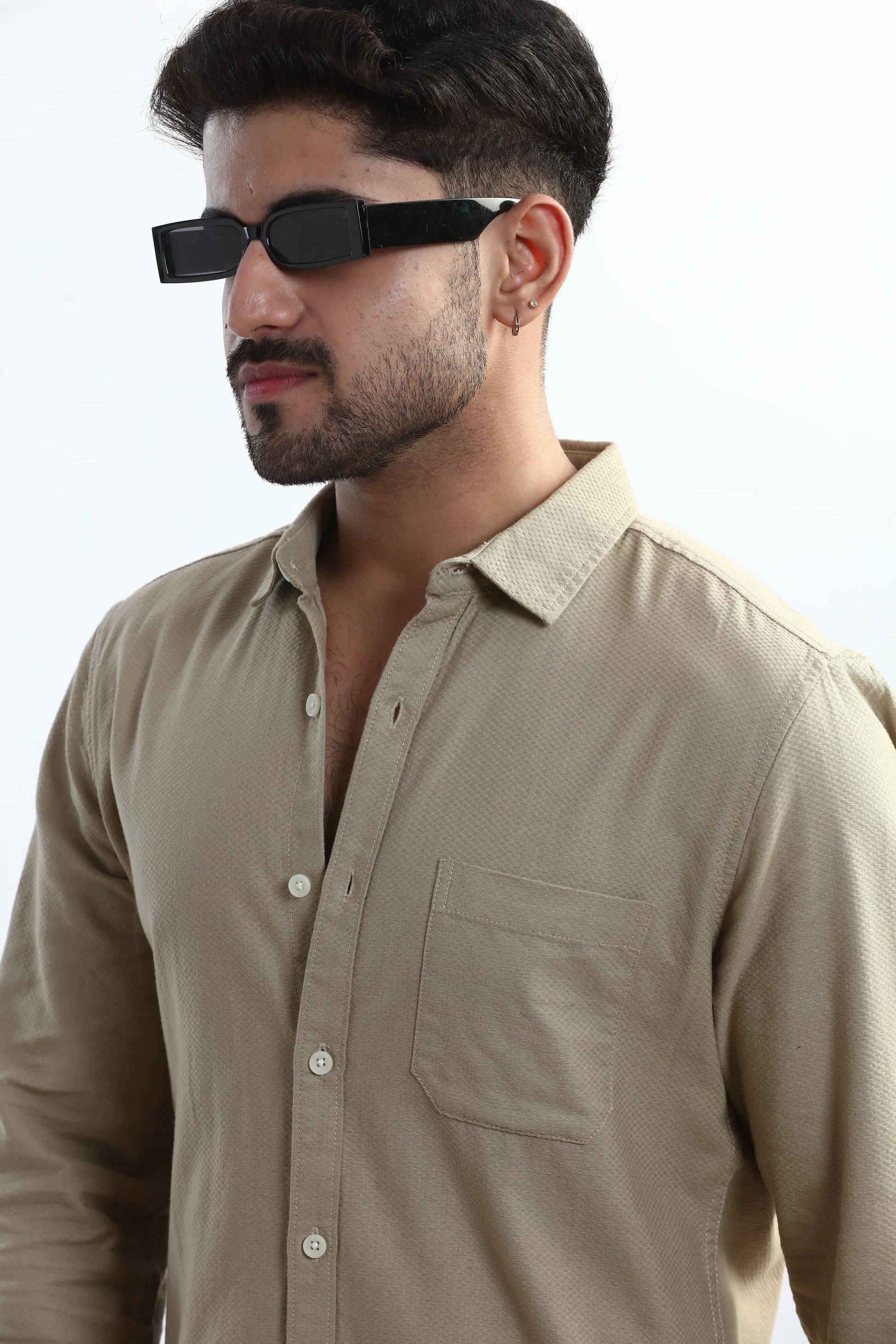 XKIND MEN'S BEIGE TEXTURED SLIM FIT SHIRT