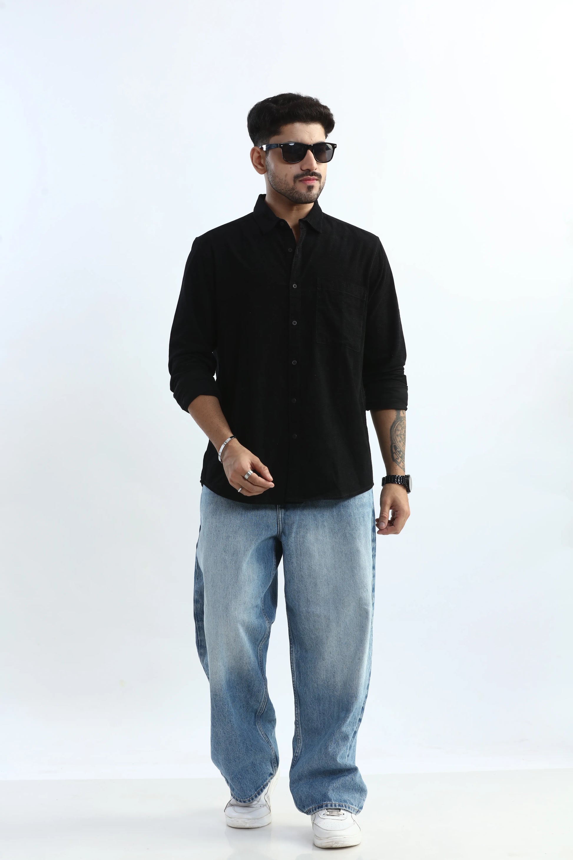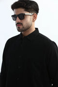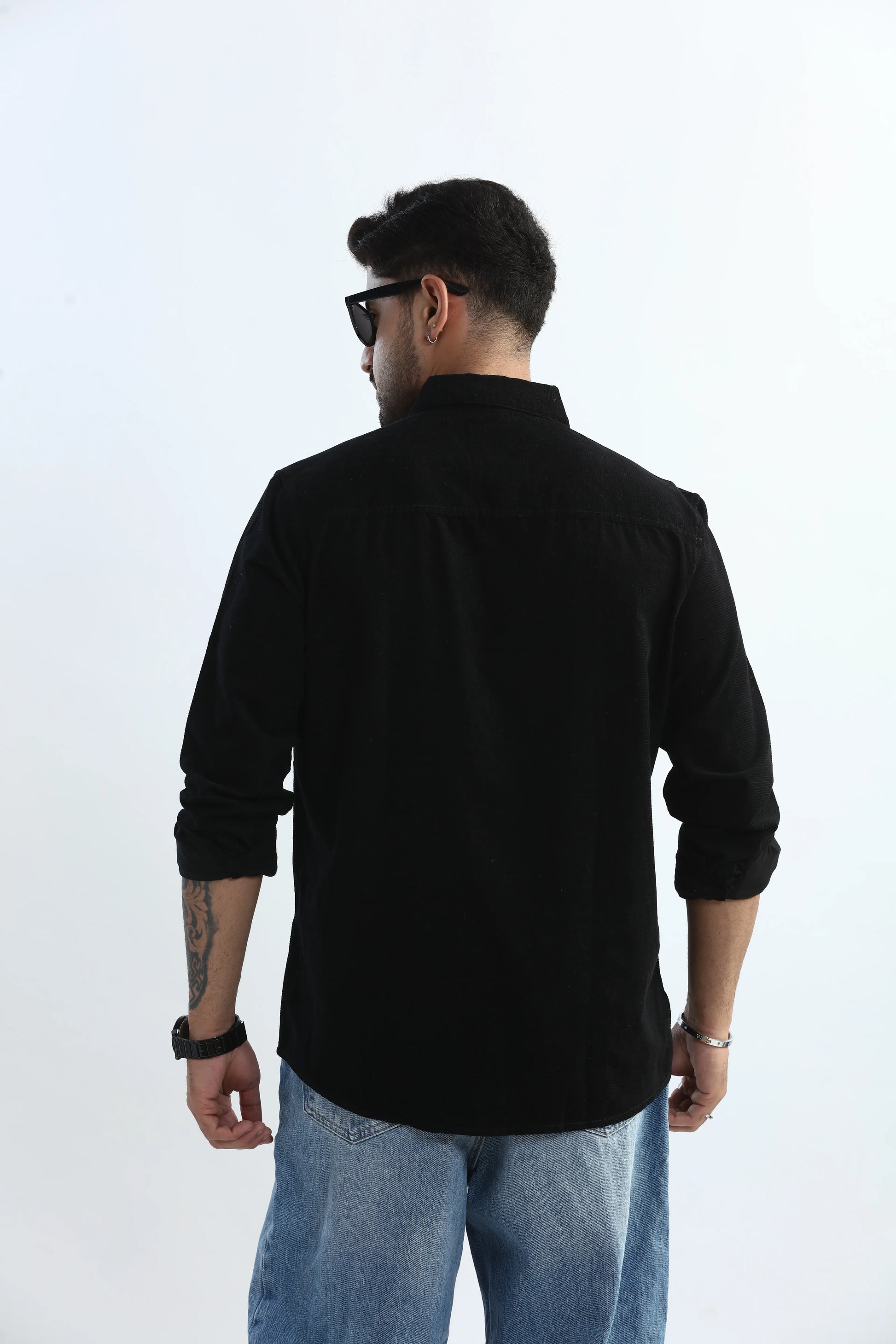 XKIND MEN'S BLACK FINE CORDUROY REGULAR FIT SHIRT