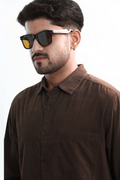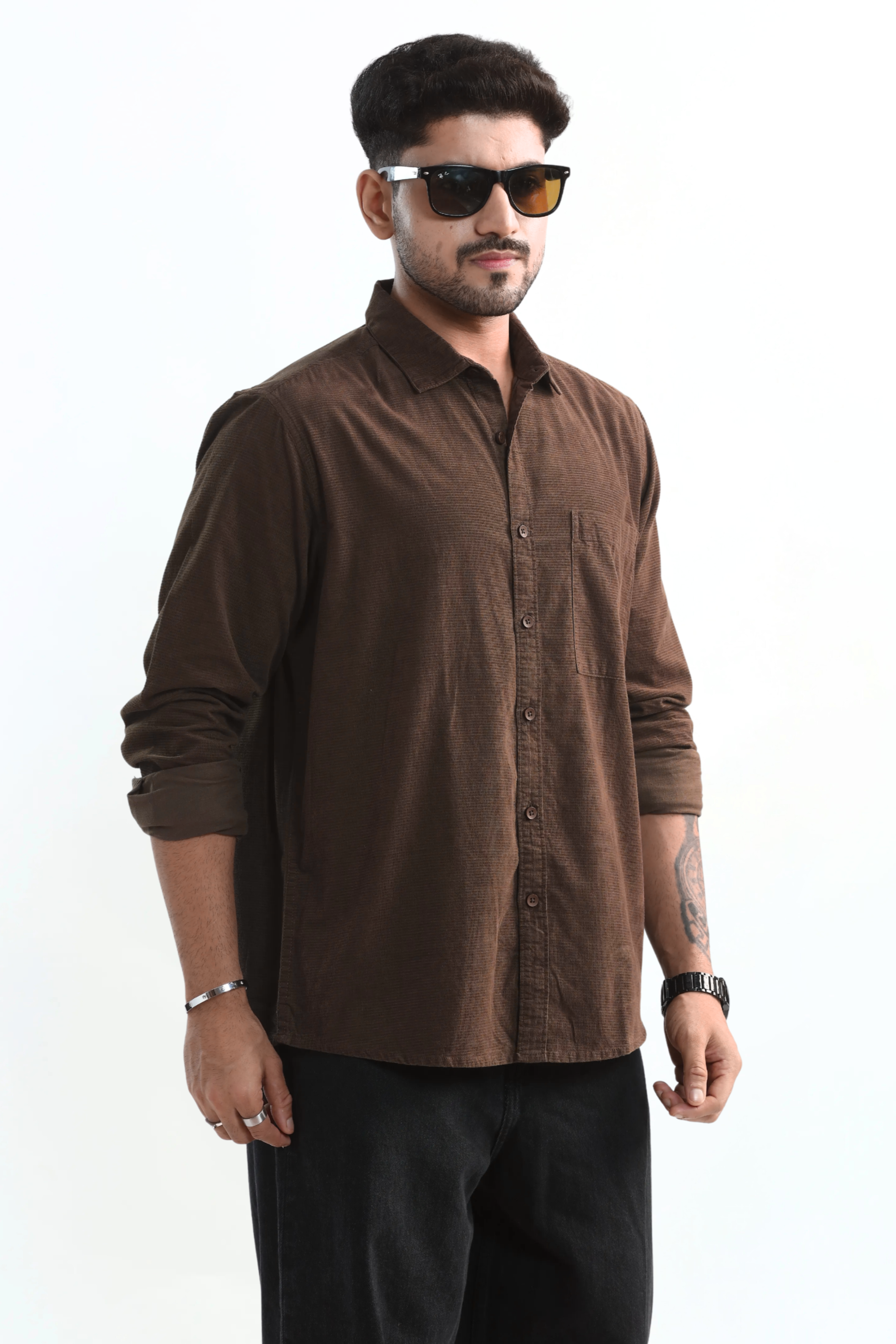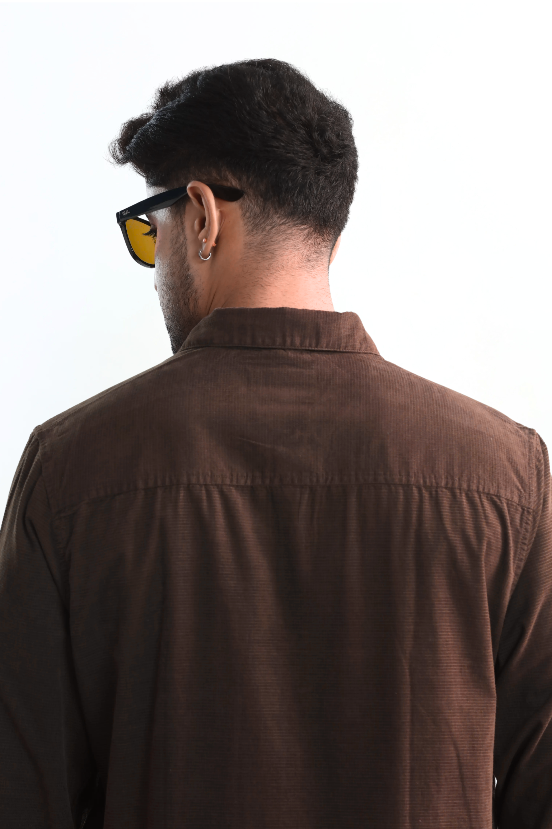 XKIND MEN'S MOCHA BROWN FINE CORDUROY REGULAR FIT SHIRT