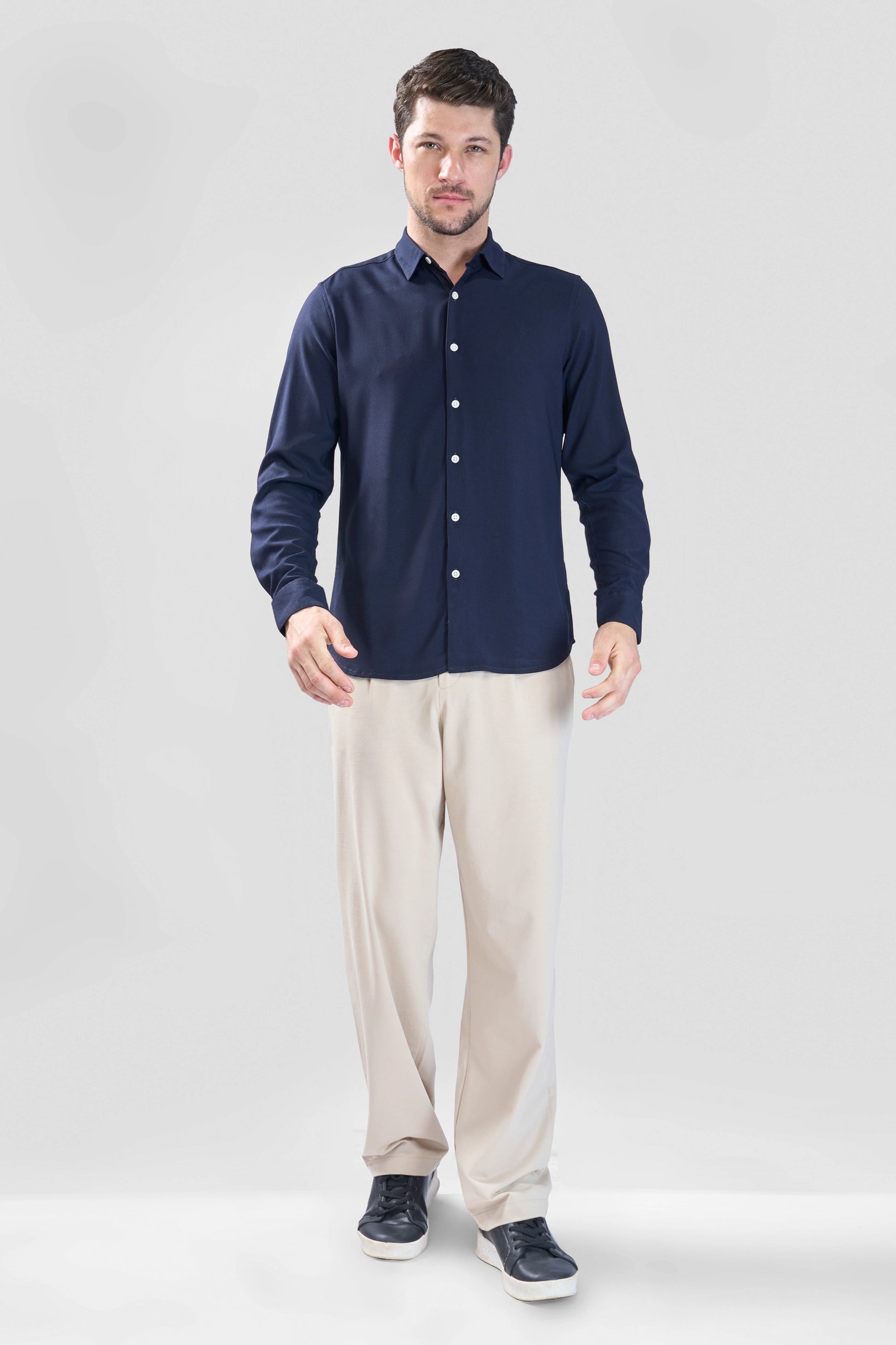 XKIND NAVY BLUE PLAIN SLIM FIT SHIRT