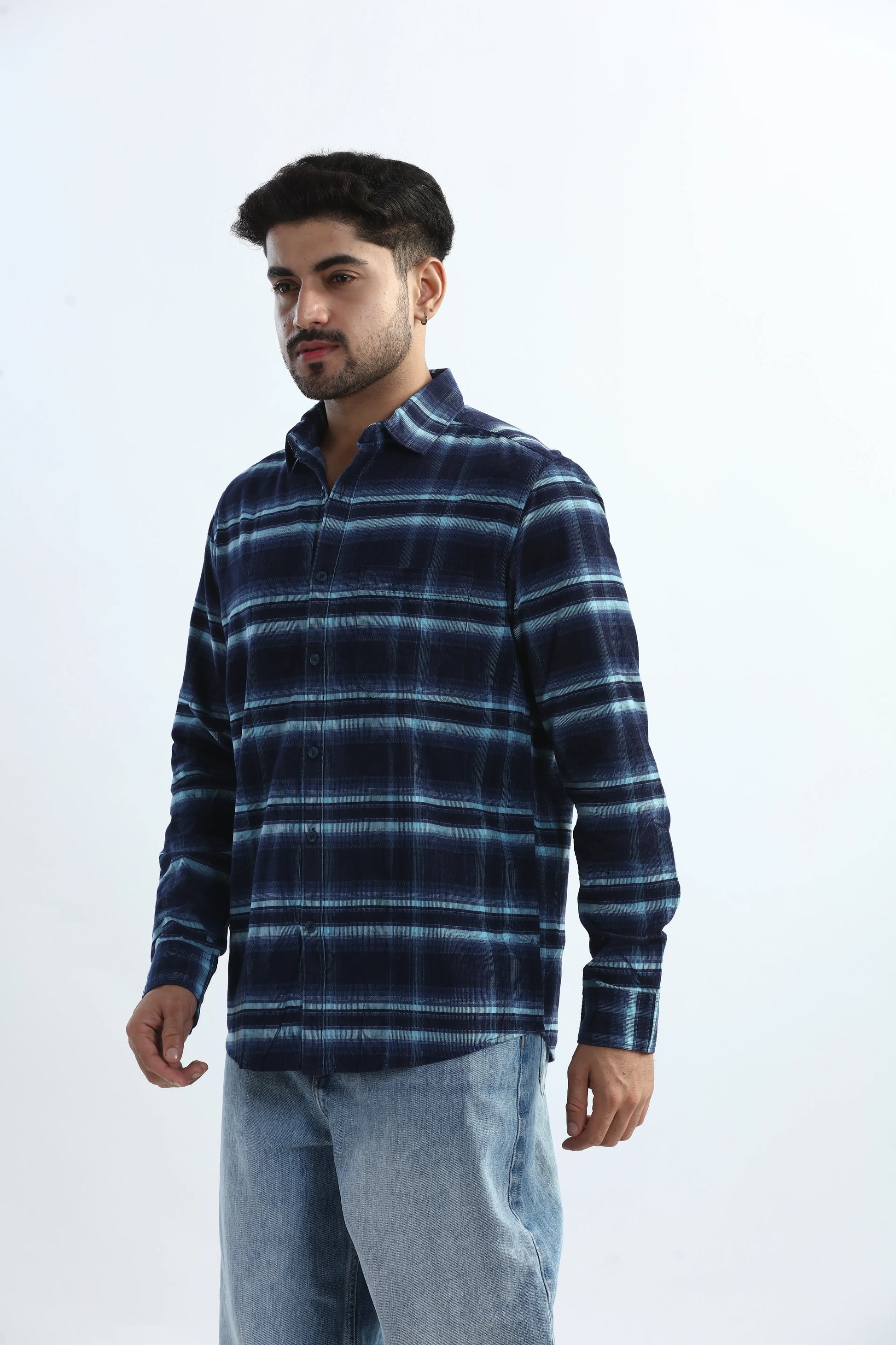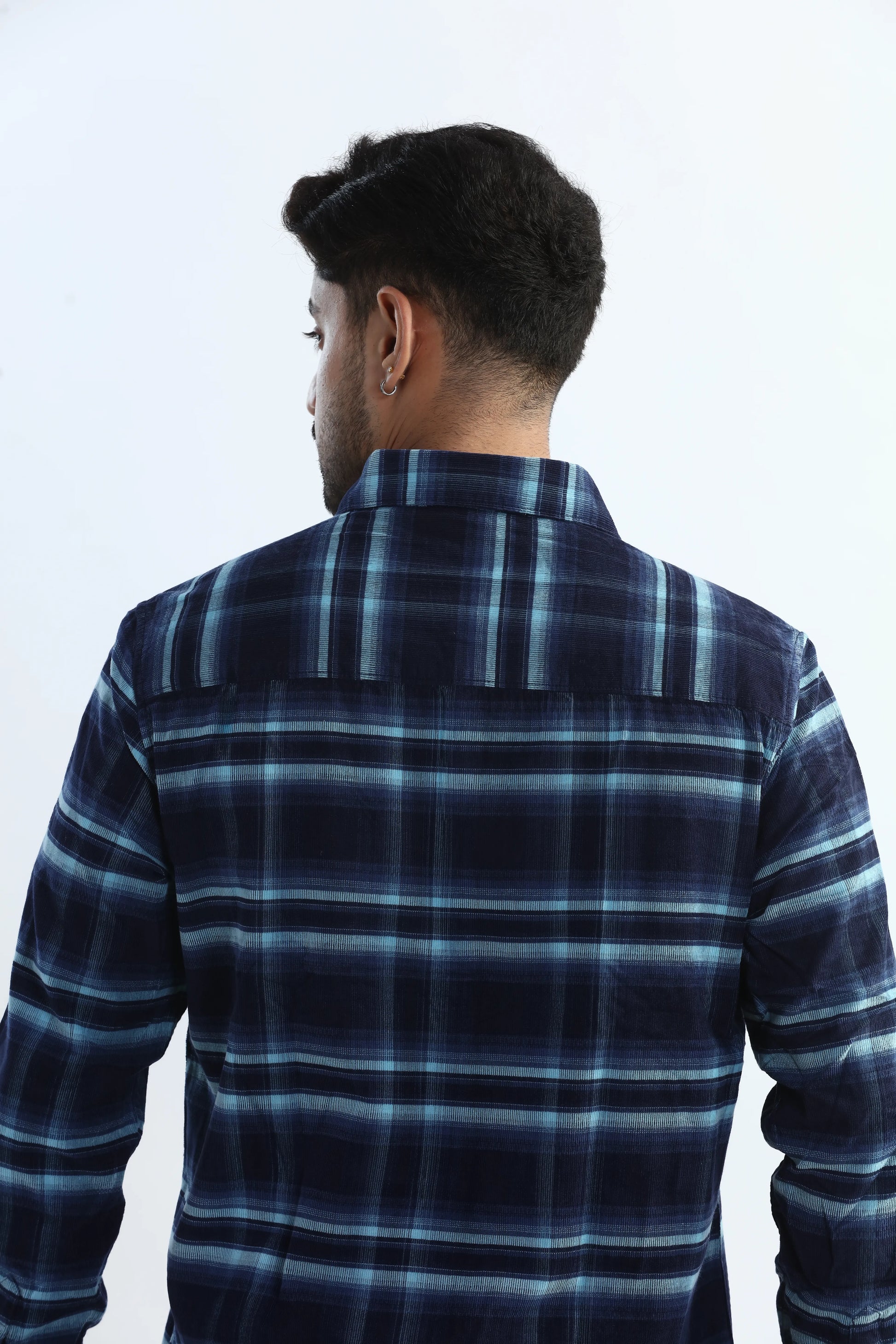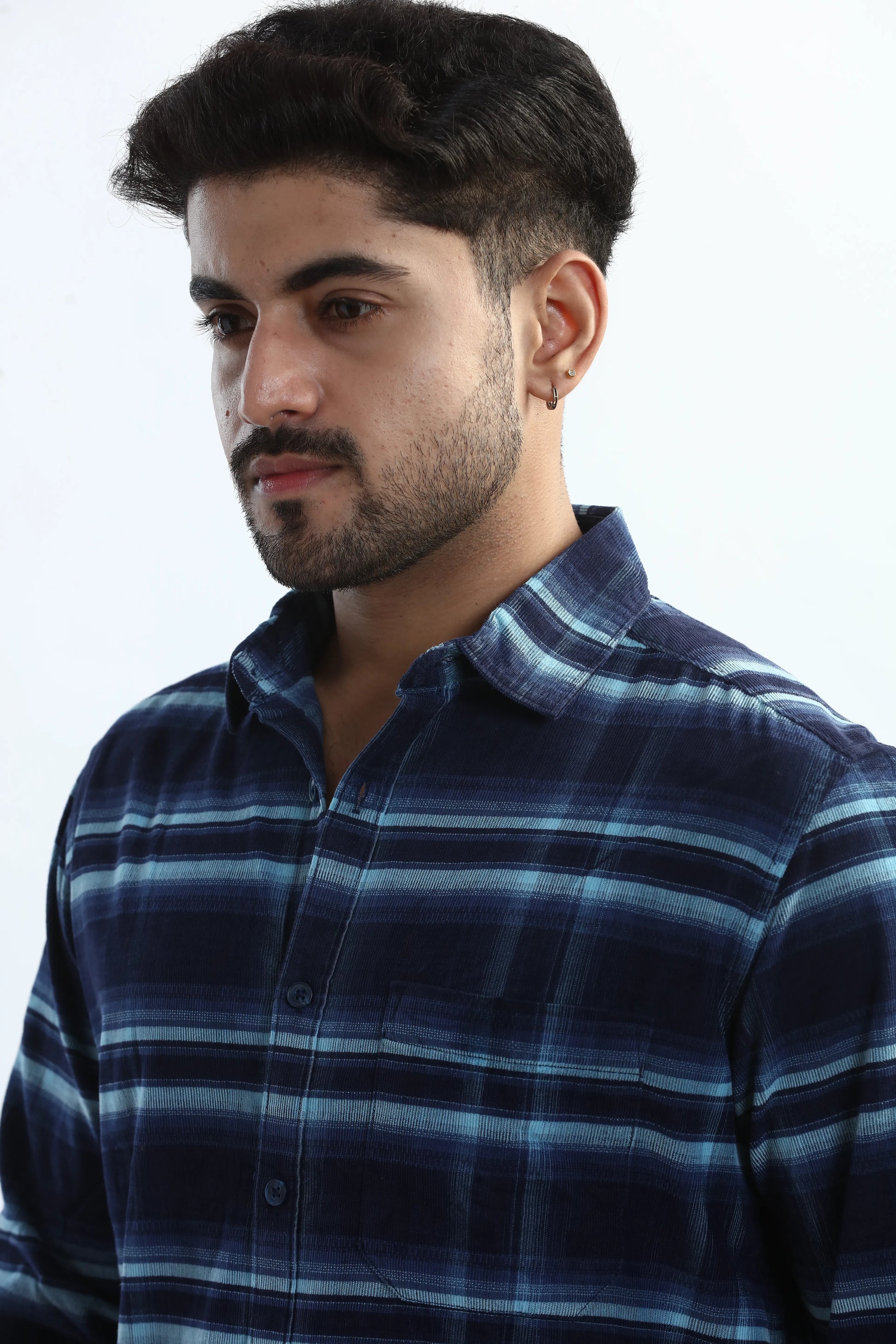 Experience rugged sophistication with our navy blue fine corduroy check shirt. Soft, cotton-rich fabric ensures exceptional comfort. Perfect for casual dinner dates, weekend outings, & casual office wear. Timelessness meets refined elegance. Colour: Navy Blue