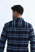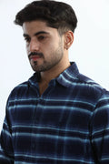 XKIND MEN'S NAVY BLUE FINE CORDUROY CHECKS REGULAR FIT SHIRT