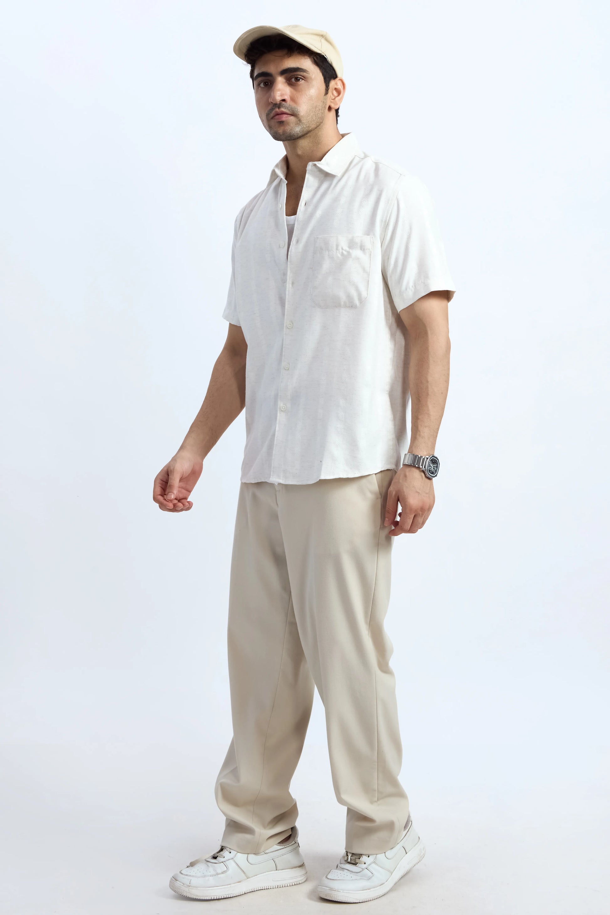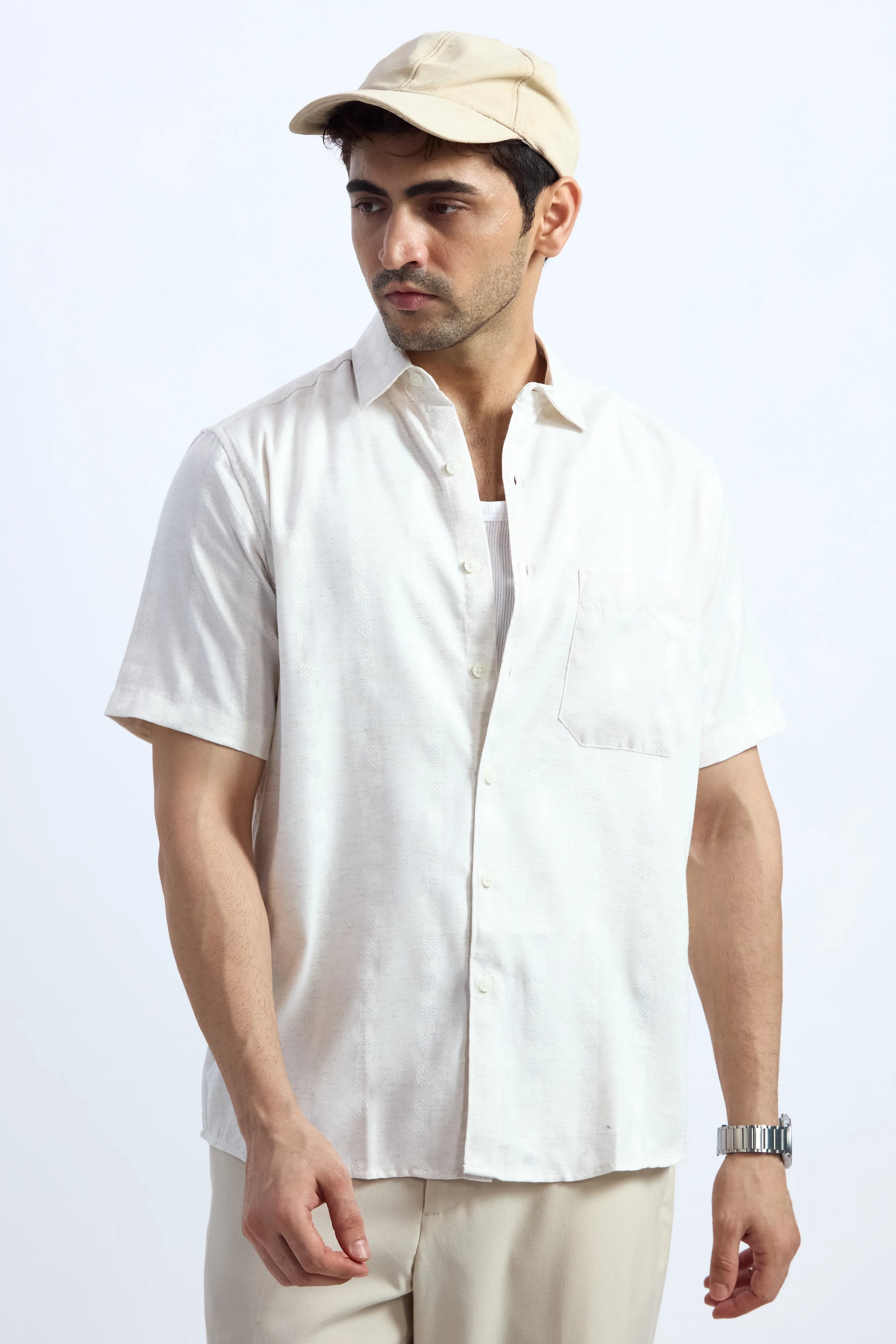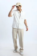 Unique stripes off-white half-sleeve shirt. Exclusive self-design, casual elegance. Perfect for everyday wear, summer gatherings, & weekend getaways.
