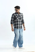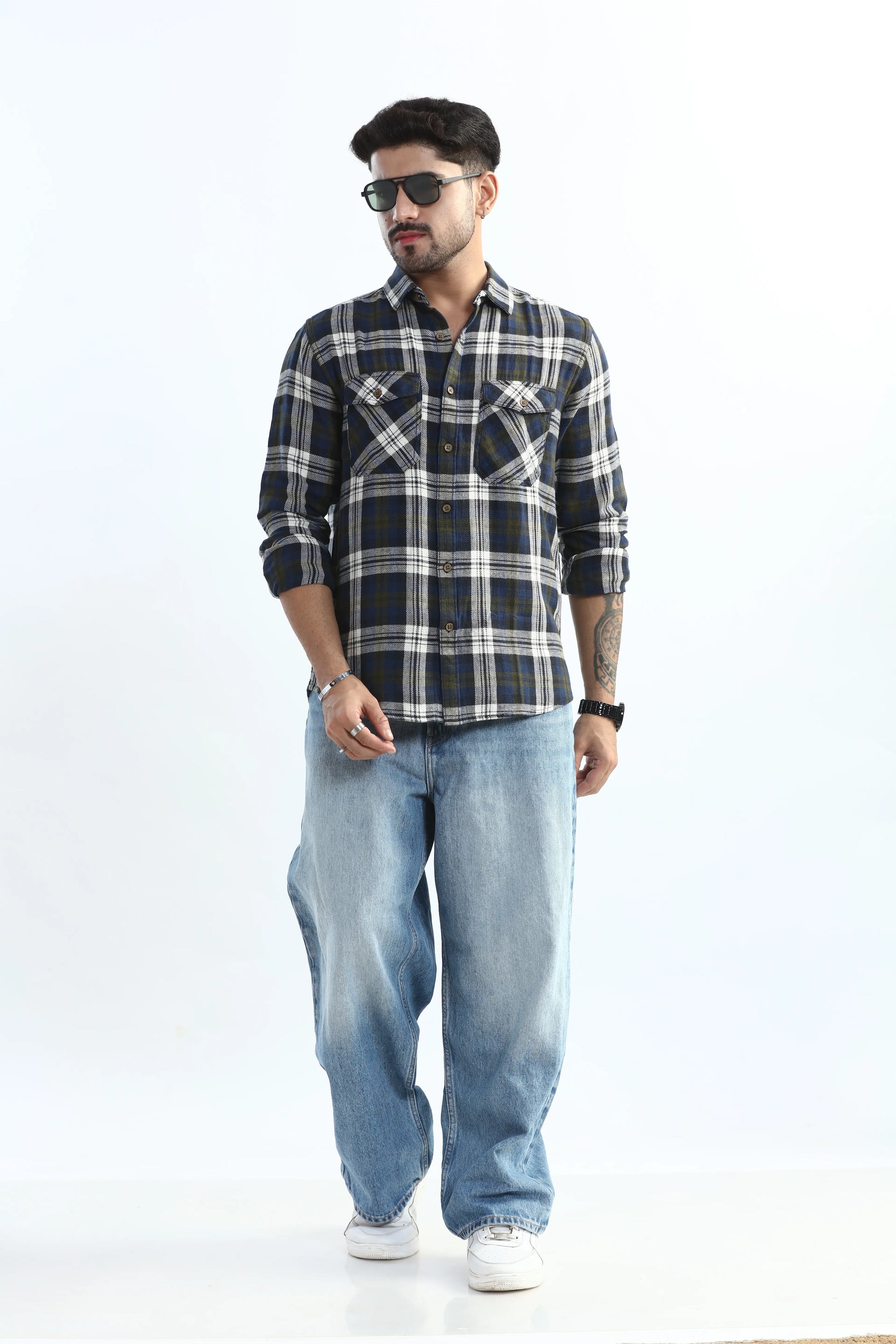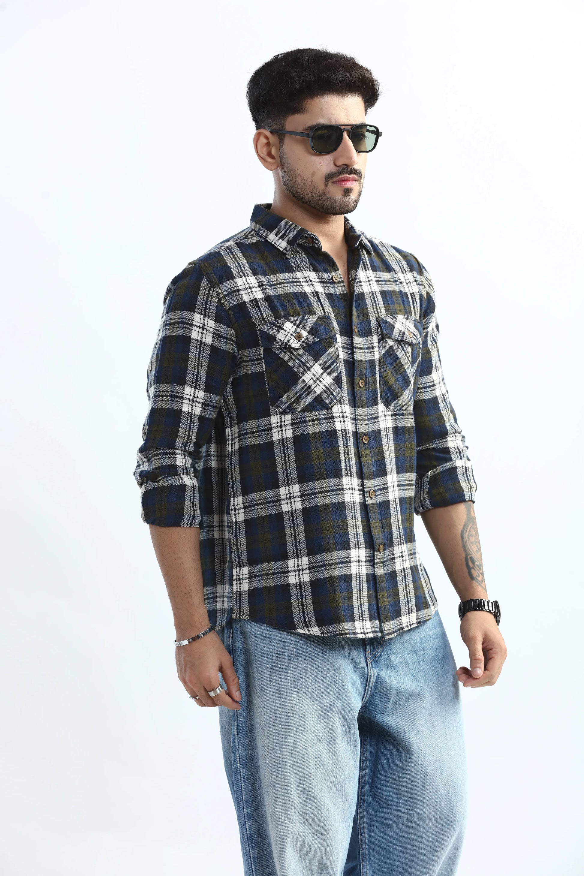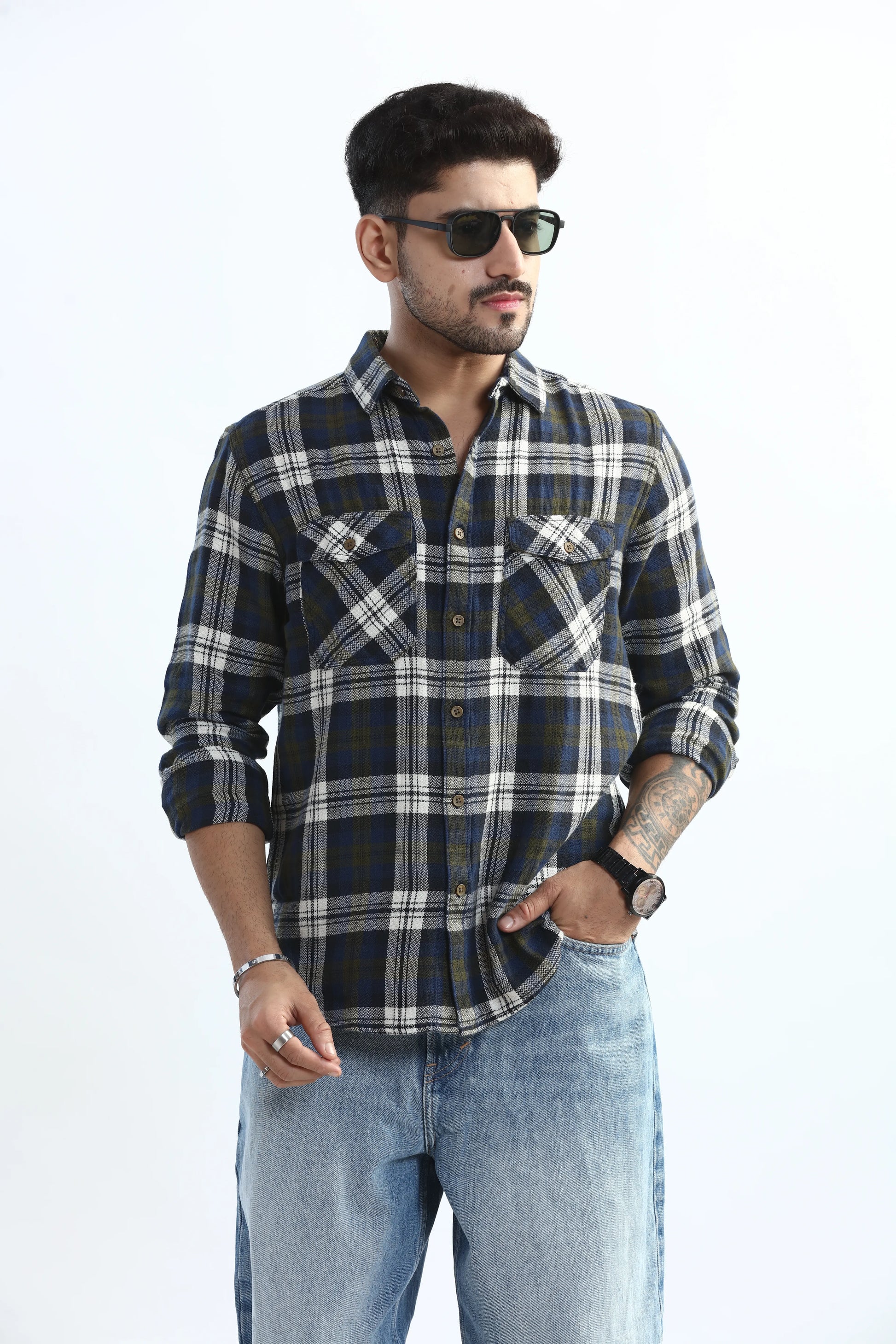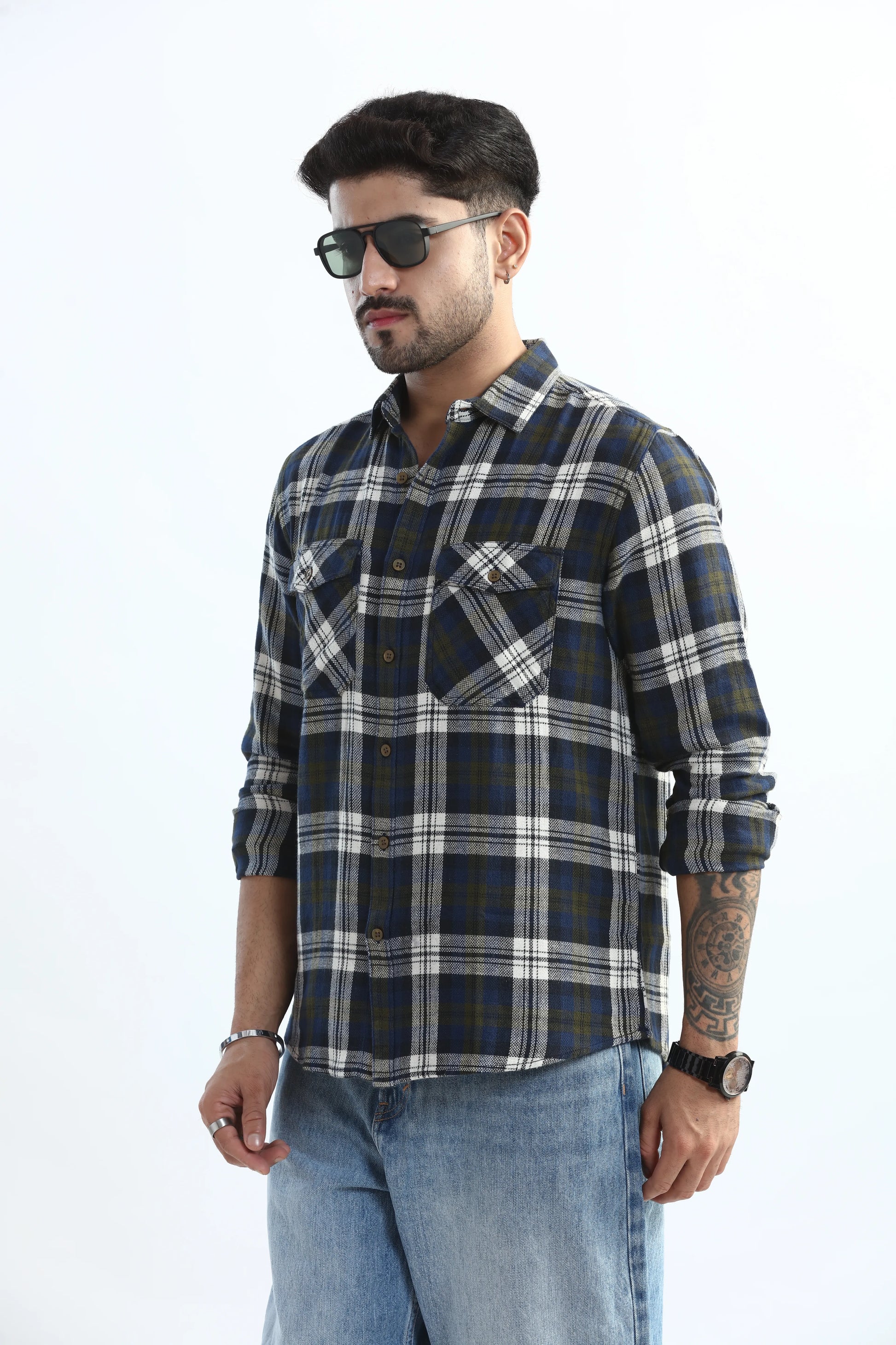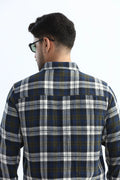 XKIND MEN'S NAVY BLUE TEXTURED CHECKS REGULAR FIT SHIRT