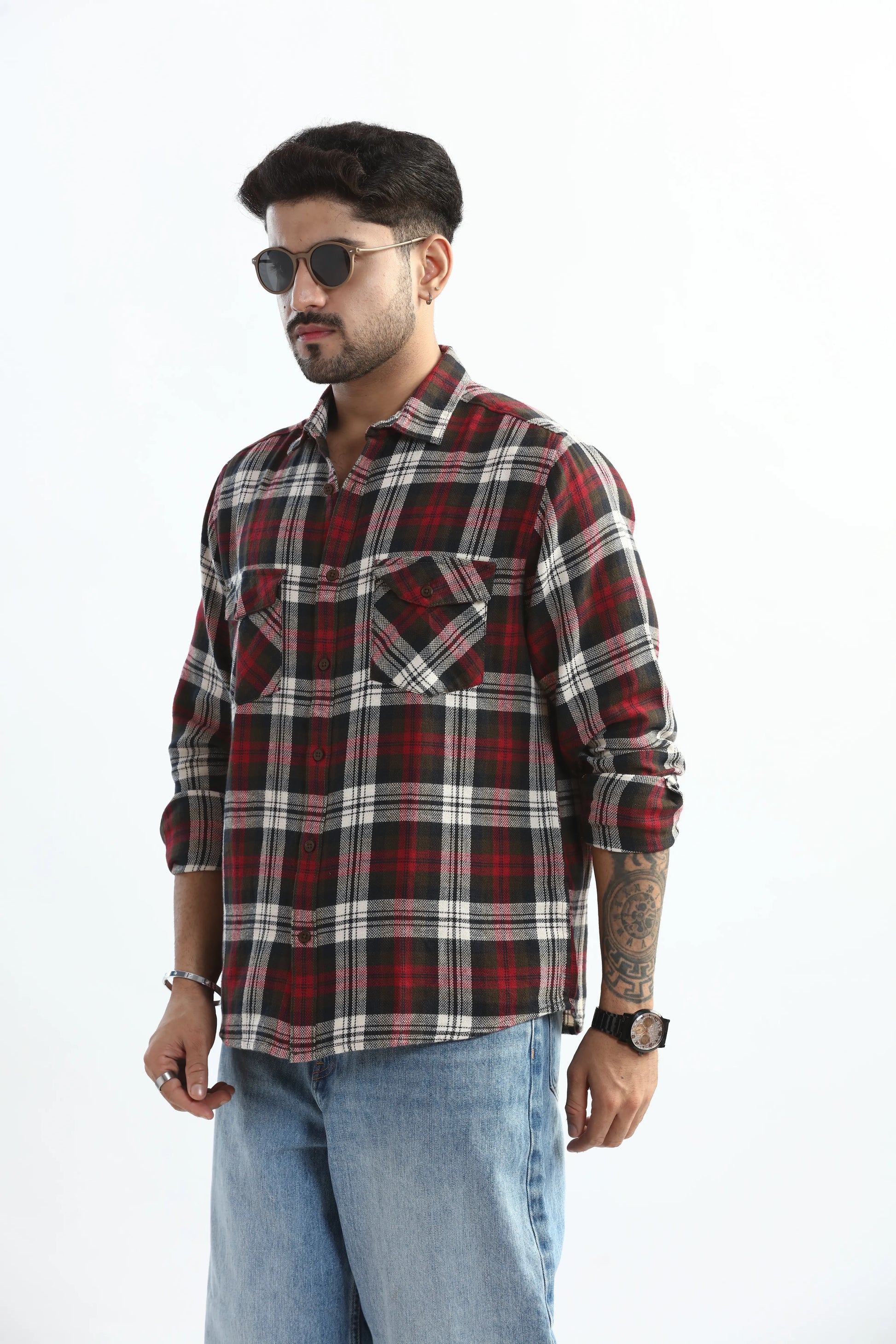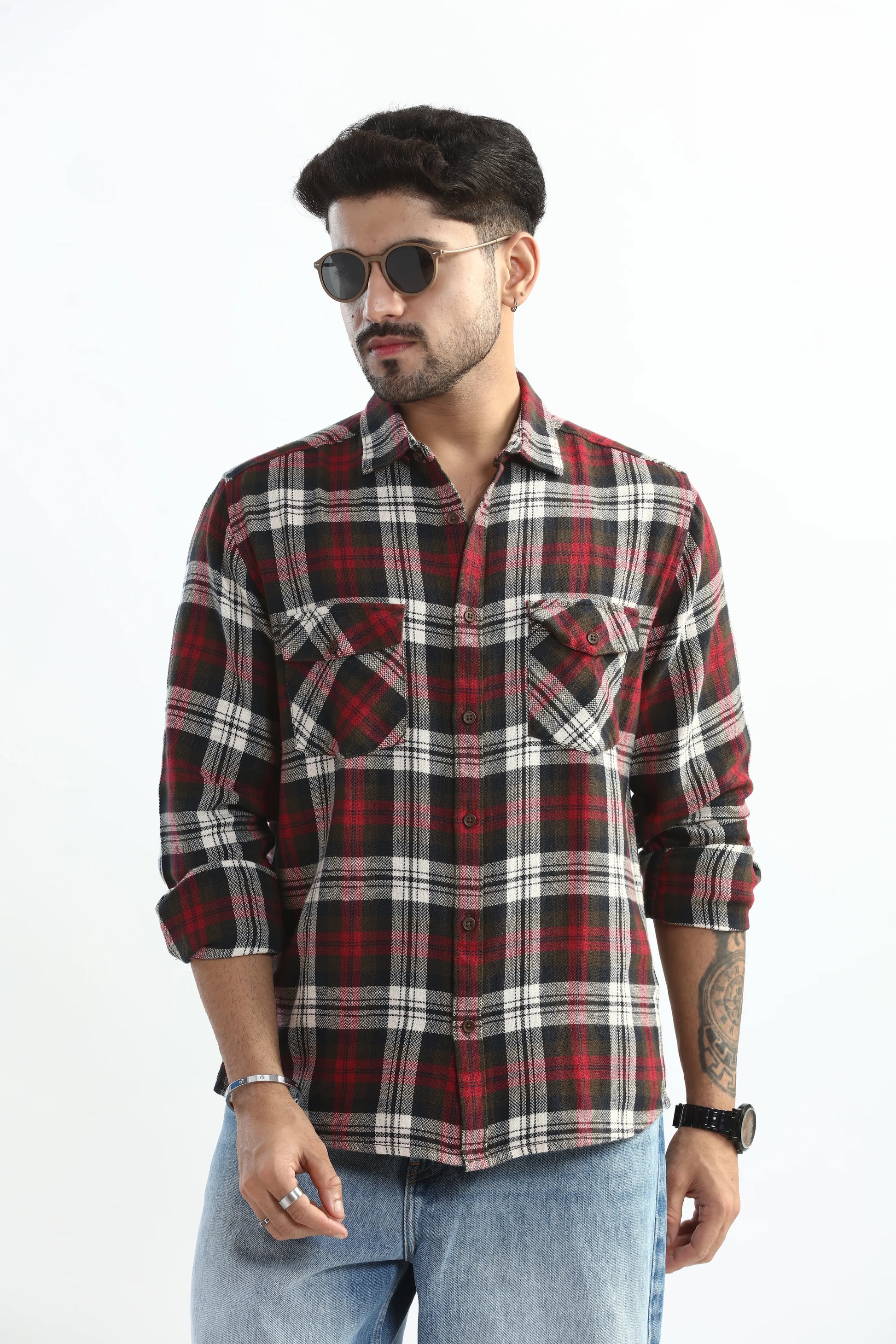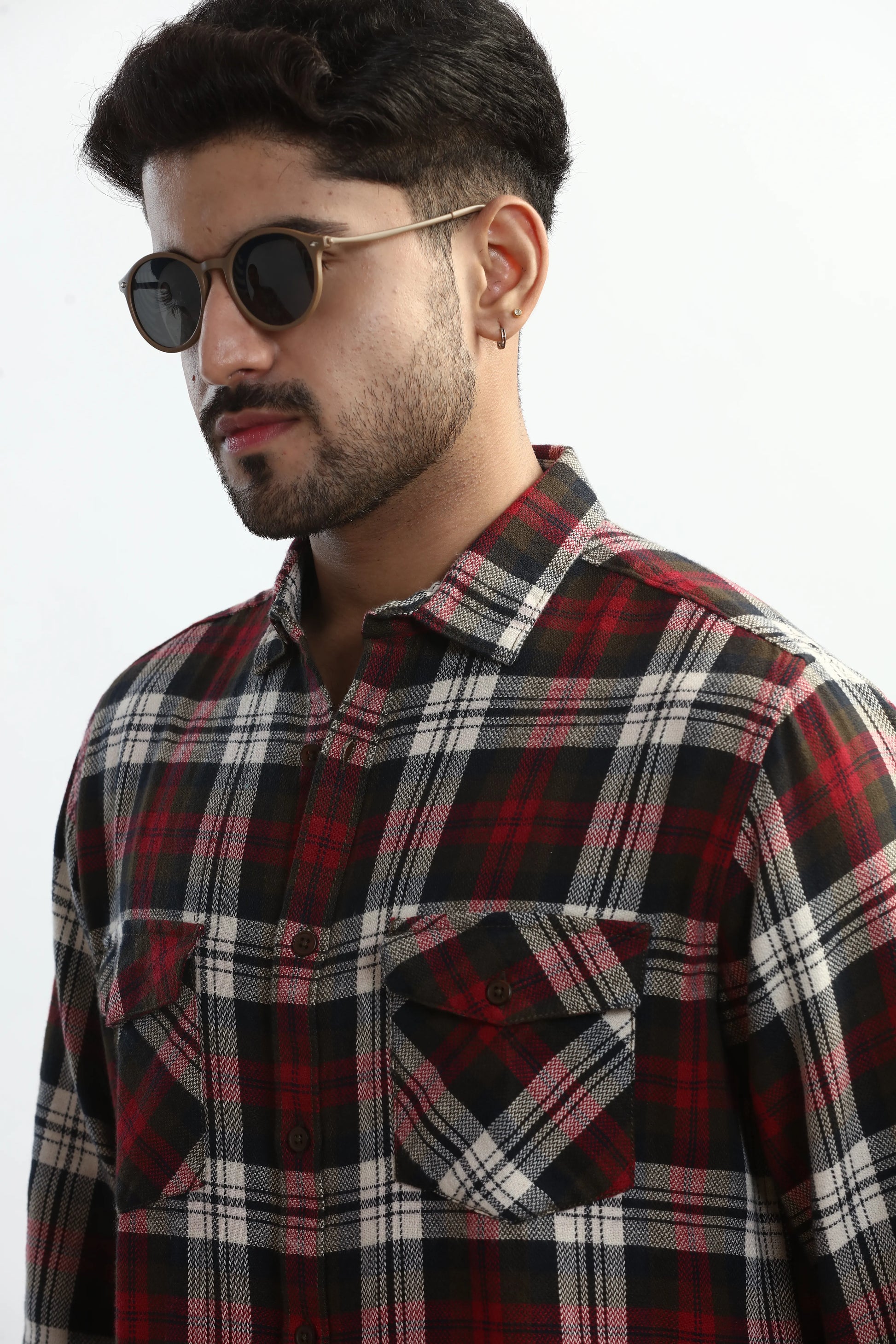 XKIND RED CHECKS REGULAR FIT SHIRT