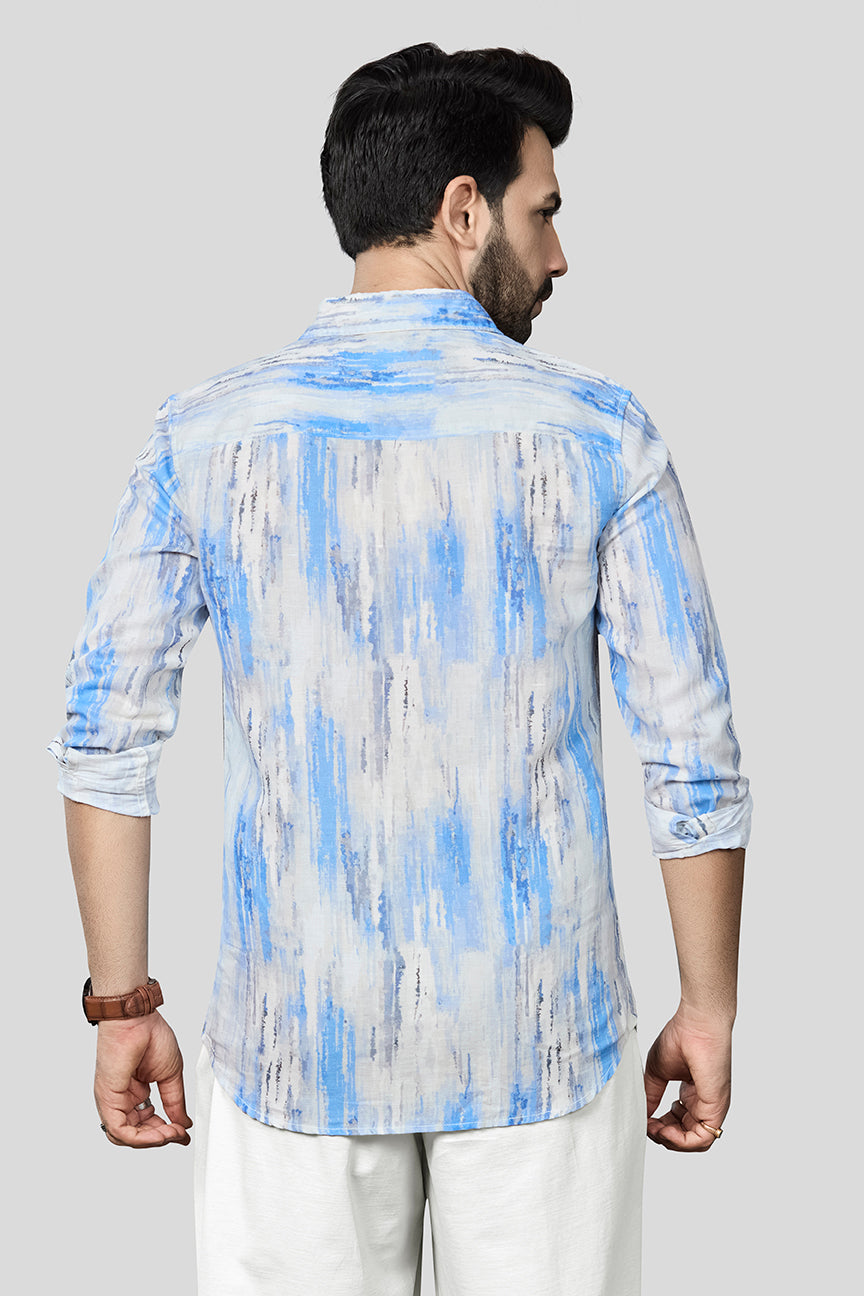 Upgrade your wardrobe with this stylish linen printed shirt. Crafted from breathable linen fabric, this shirt offers comfort and sophistication. The Sky Blue tone provides a versatile canvas for the unique print, adding a touch of personality to your outfit.