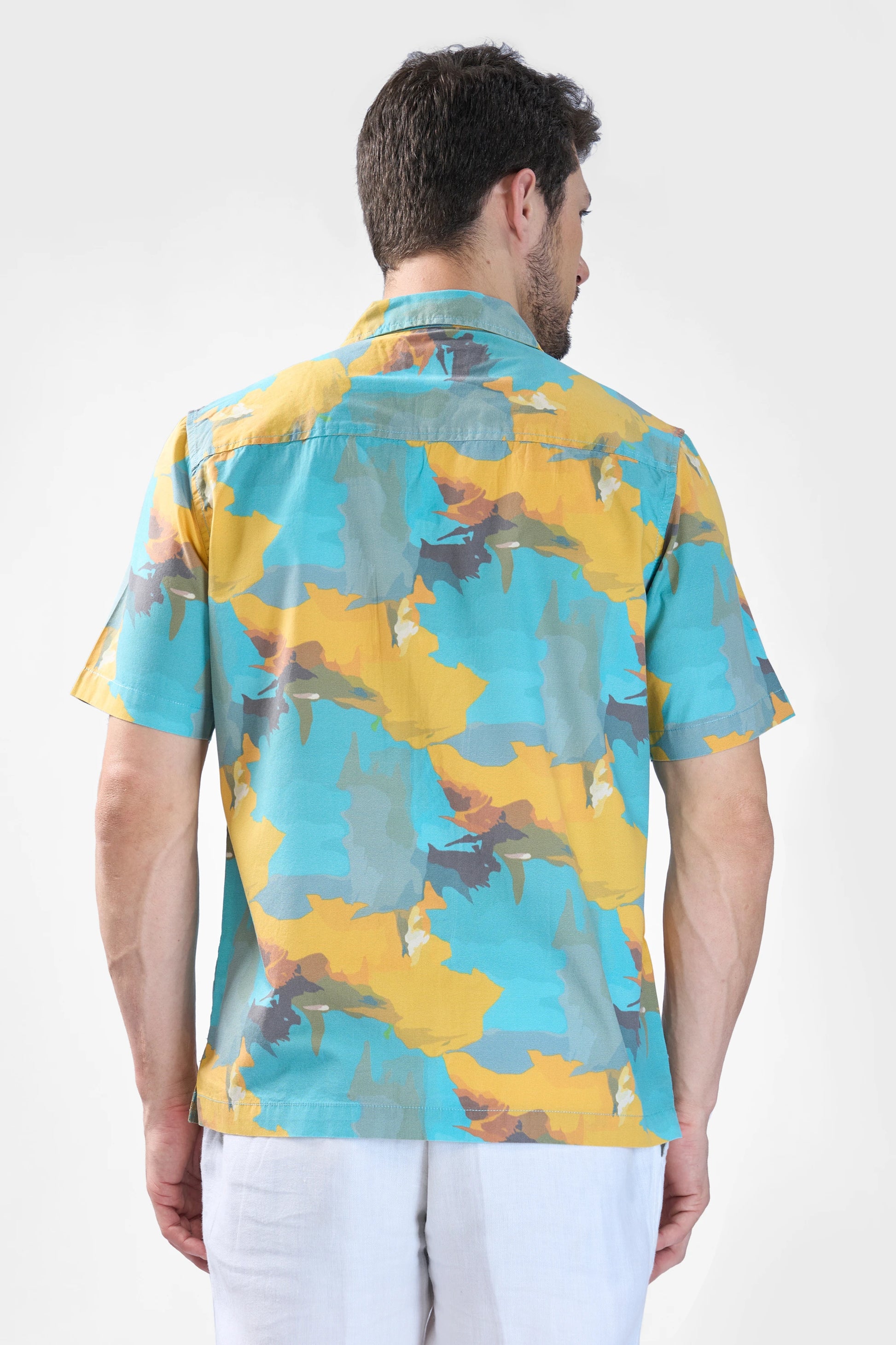 XKIND TEAL BLUE ABSTRACT PRINTED RELAXED FIT SHIRT